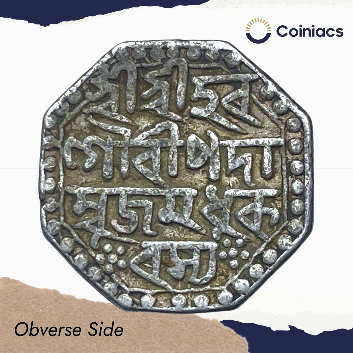 Rare One Rupee Shiva Simha (Sutanpha) without Queen 1st Issue 1637 Saka Era (1715 CE) Silver Coin, Ahom Kingdom of Assam, Collectible.