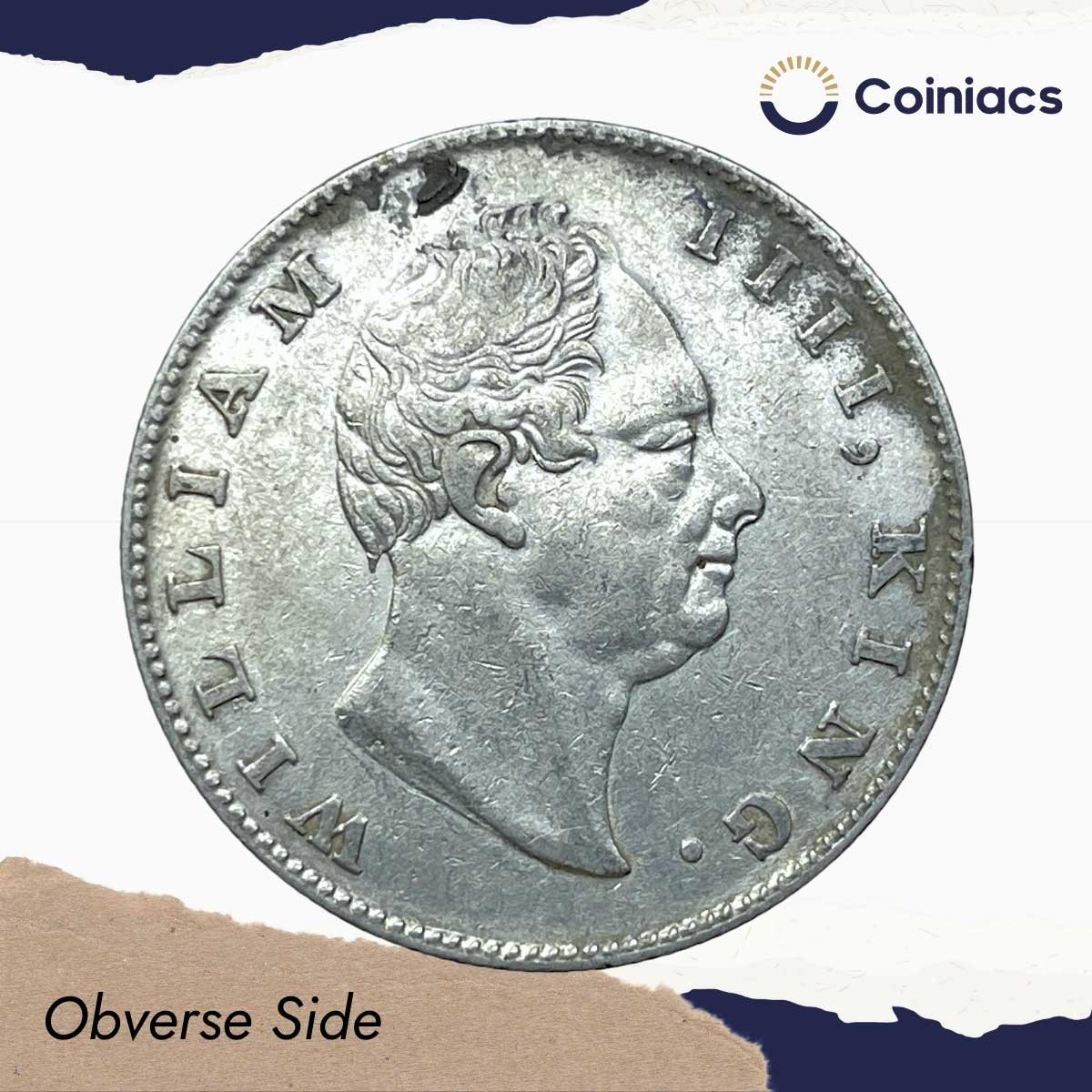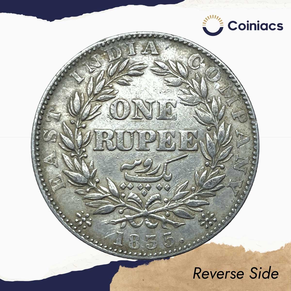 Rare One Rupee William IIII 1835 Calcutta Mint (Obv-A, Rev-II) Silver Coin, British India Uniform Coinage, Collectible.