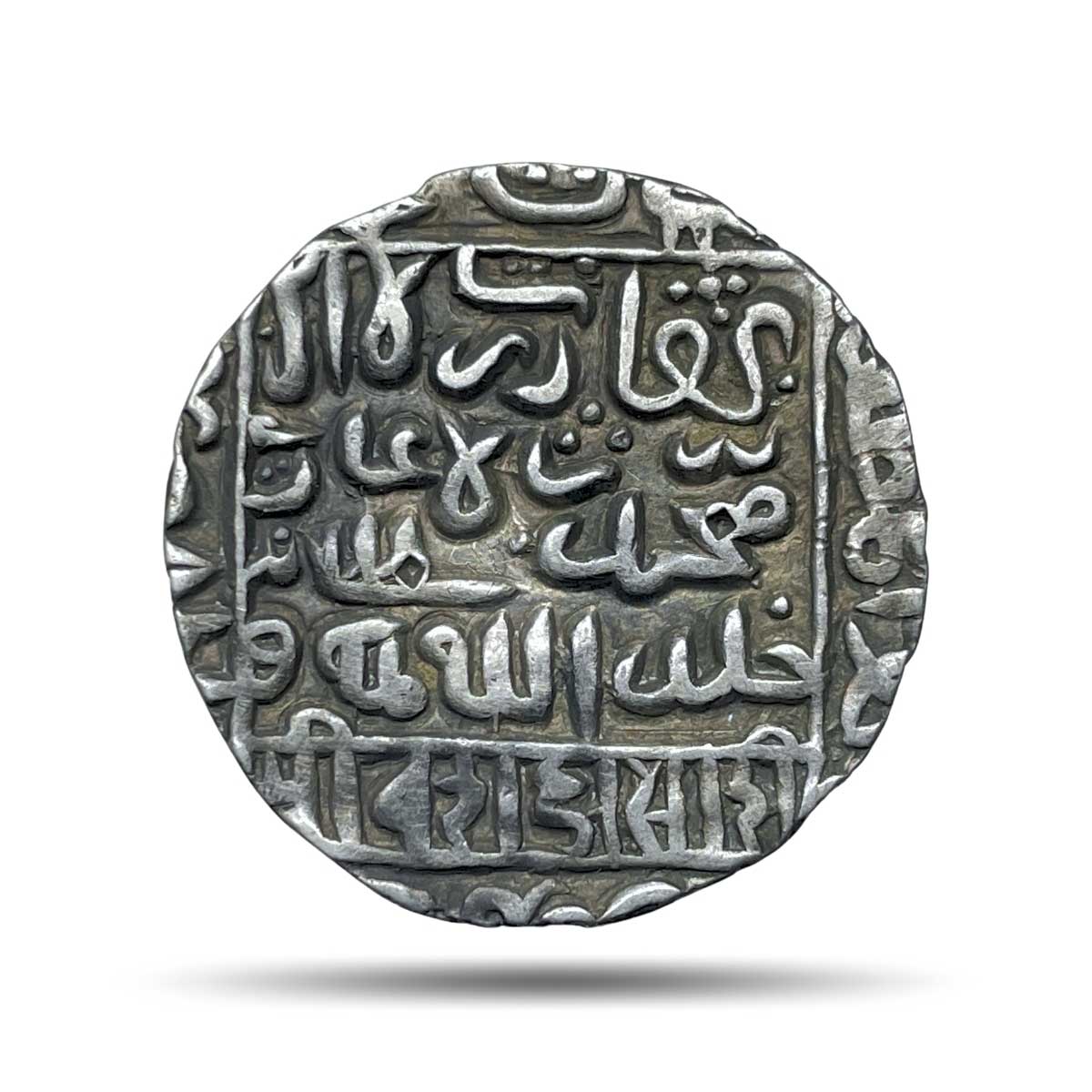 Rare Rupee Ghiyath Al-Din Bahadur Shah Suri (Reign Sirca 1555-1561) Mintless Type Silver Historic Coin, Muhammad Shahi Dynasty of Bengal Sultanate, XF+.