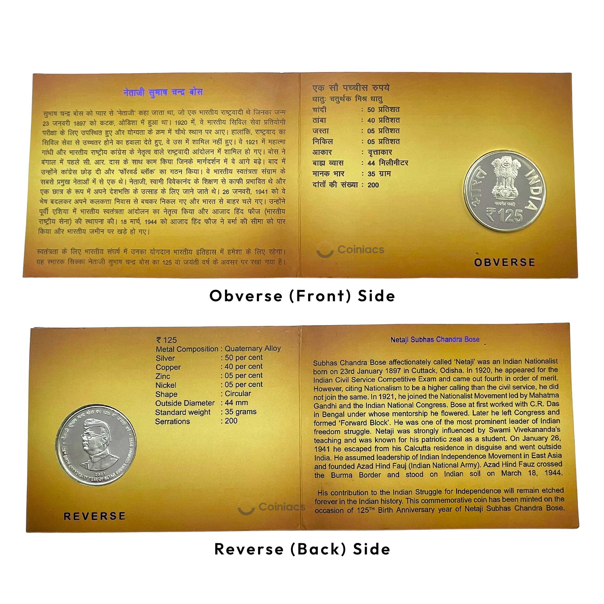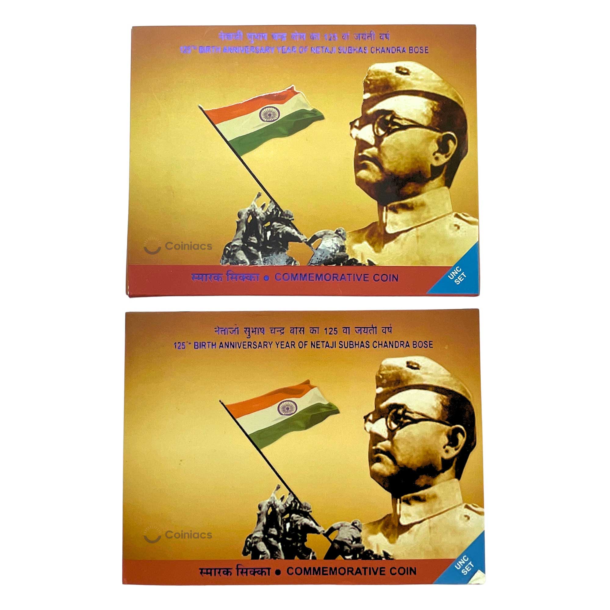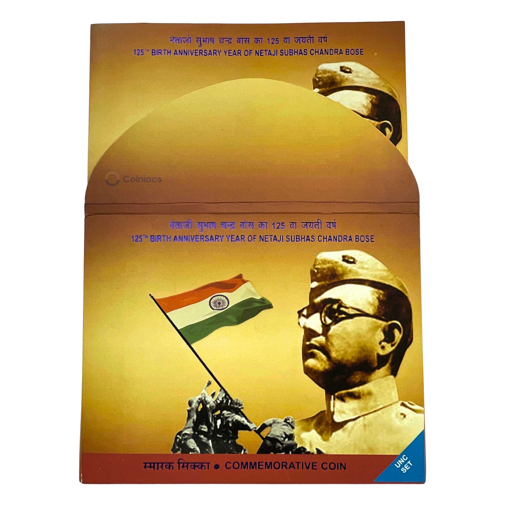 Rare UNC SET of 125th Birth Anniversary of Netaji Subhas Chandra Bose 2021 125 Rupees Calcutta Mint Silver Commemorative Coin, Republic India Decimal Series, UNC.