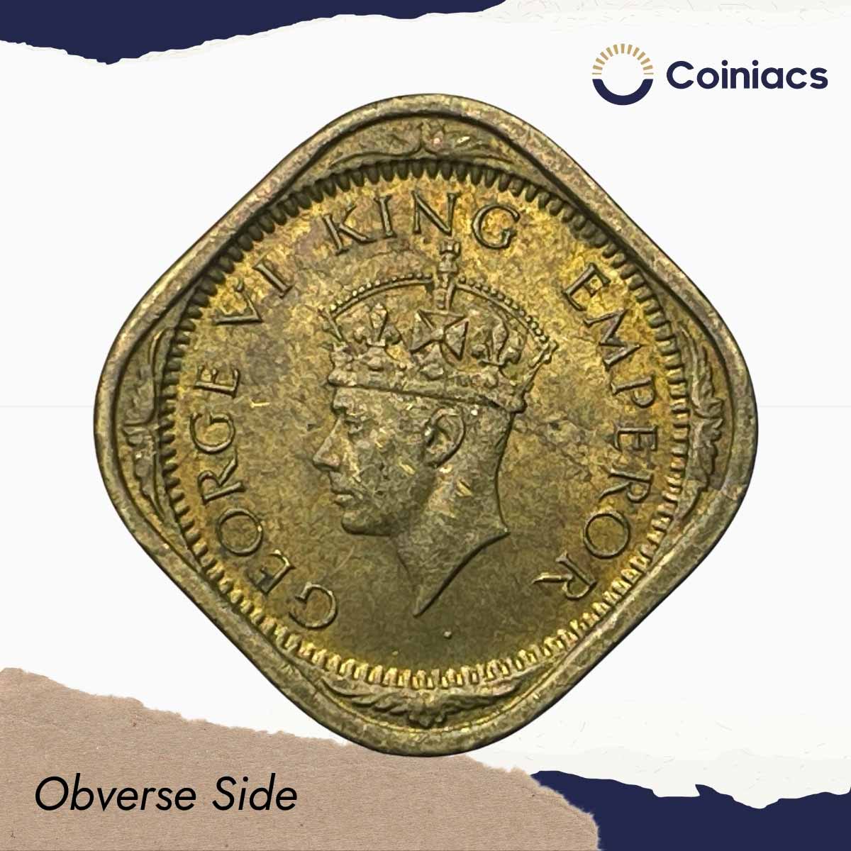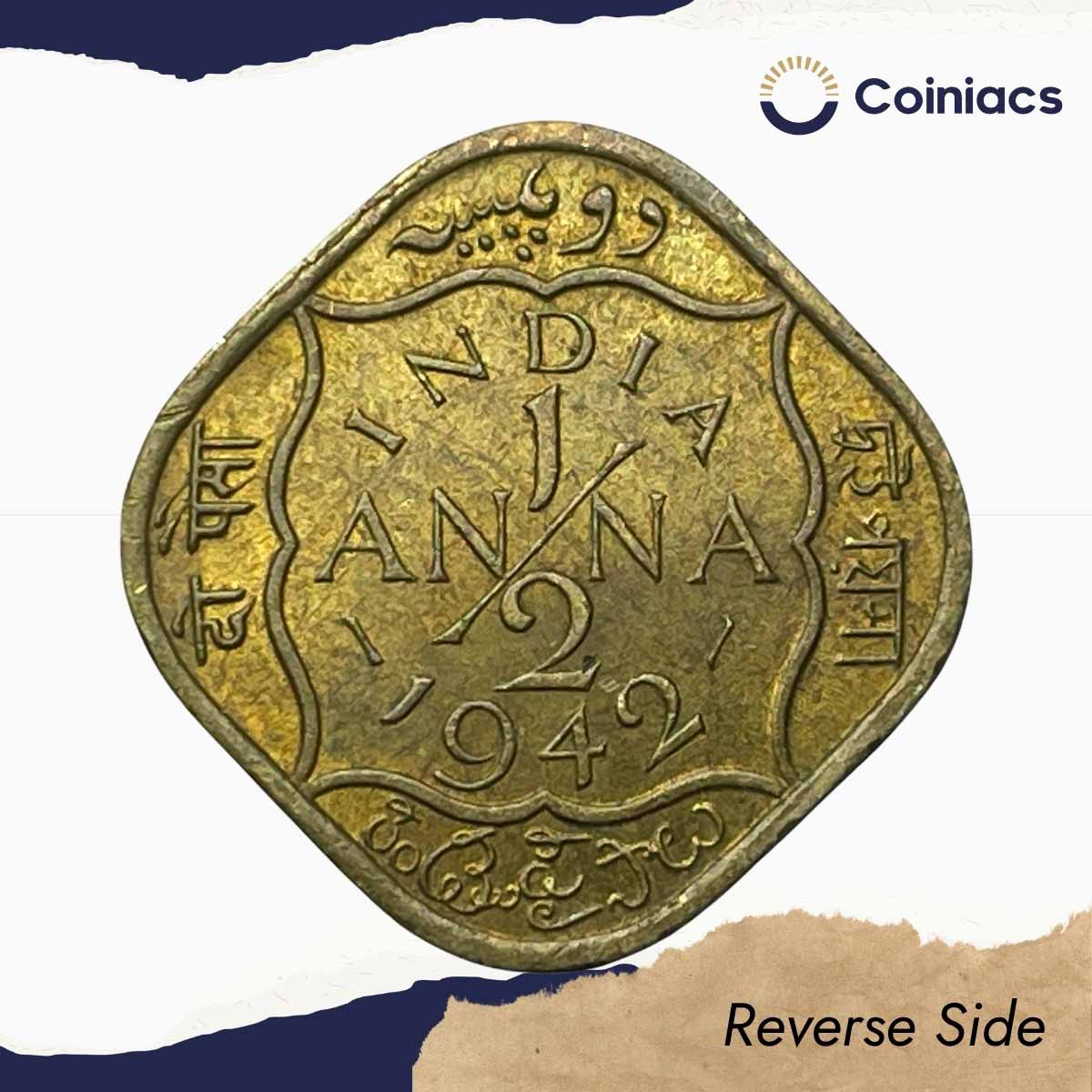 Scarce 1/2 Anna George VI King Emperor 1942 Bombay Mint Nickel-Brass Coin, British India Uniform Coinage, UNC.