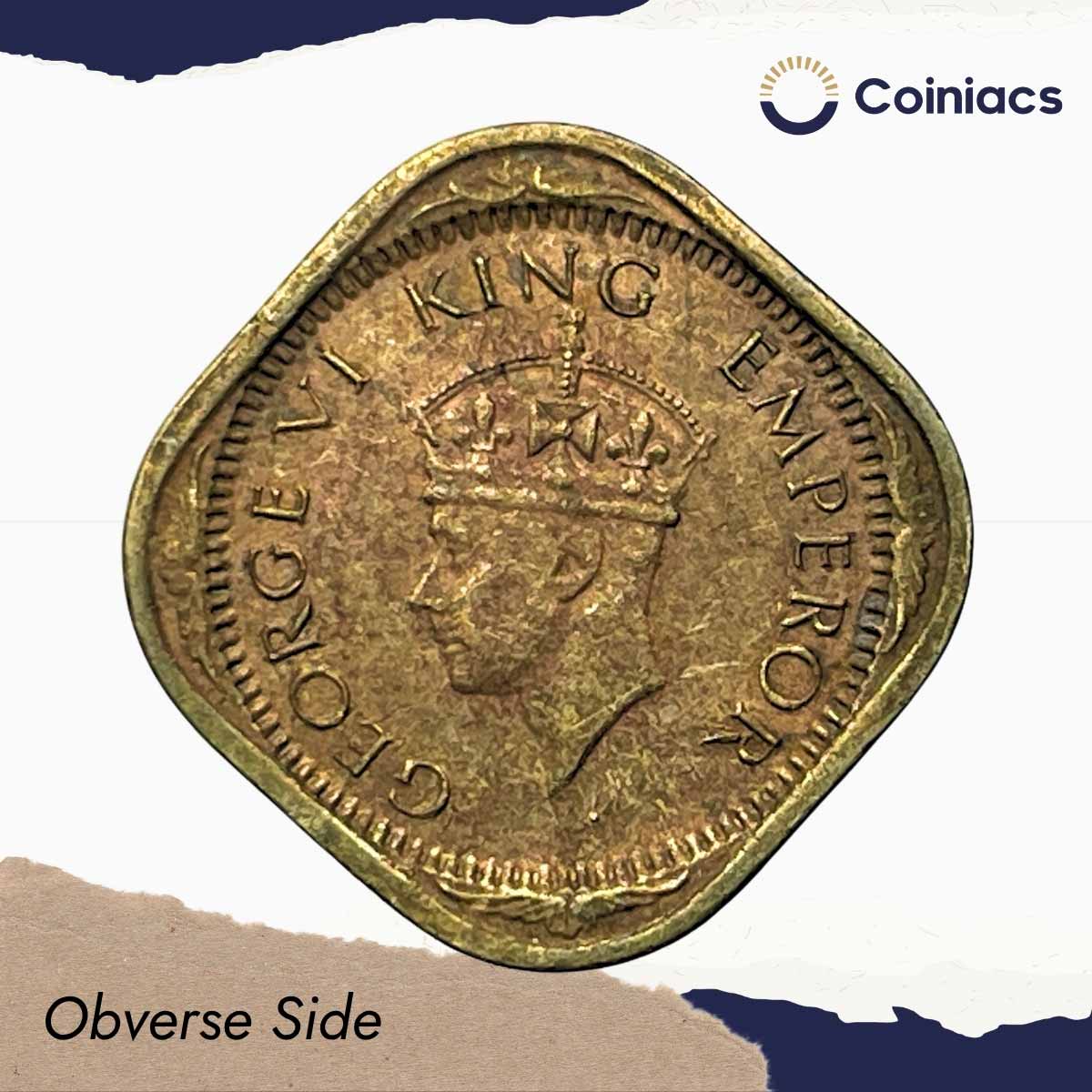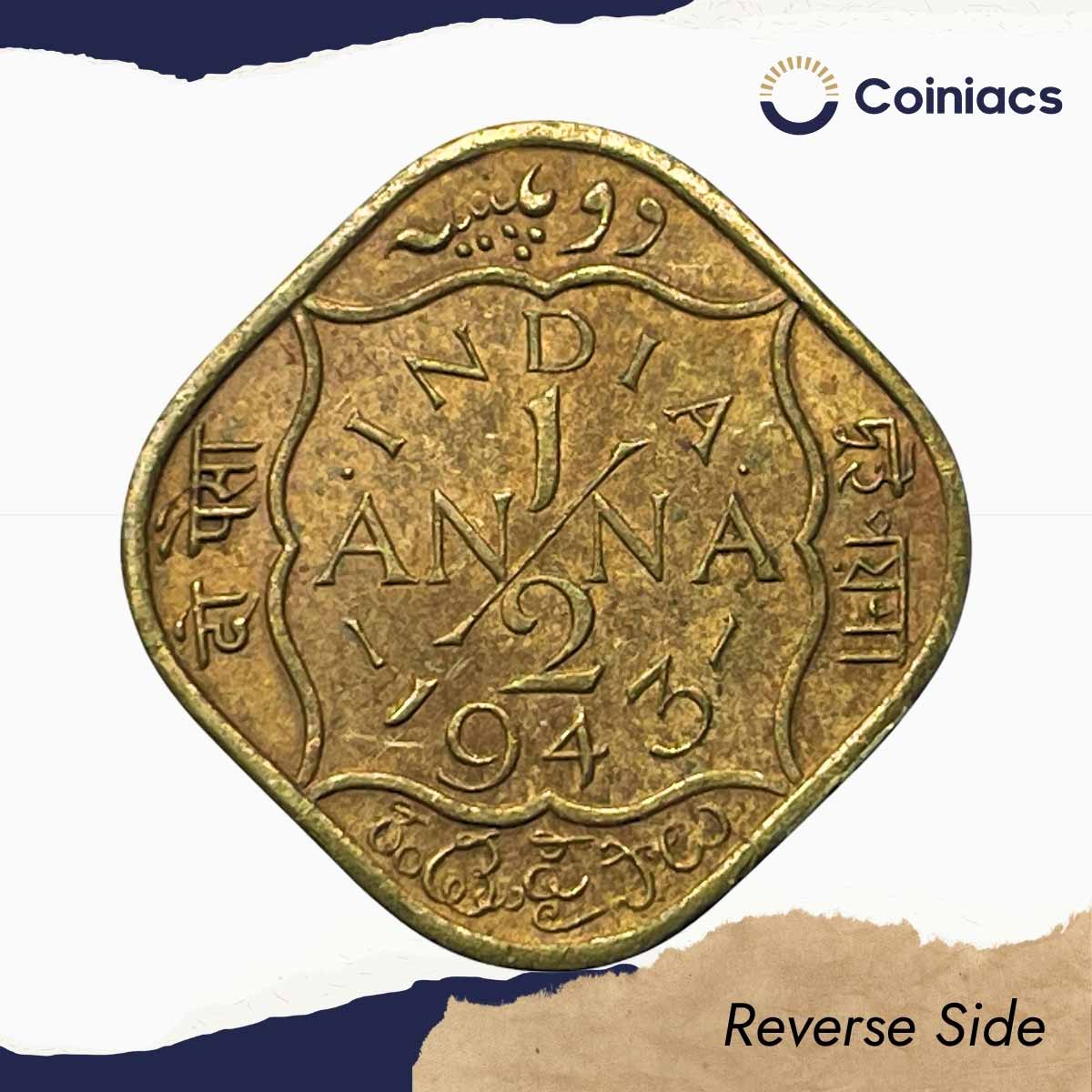 Scarce 1/2 Anna George VI King Emperor 1943 Calcutta Mint Nickel-Brass Coin, British India Uniform Coinage, Collectible.