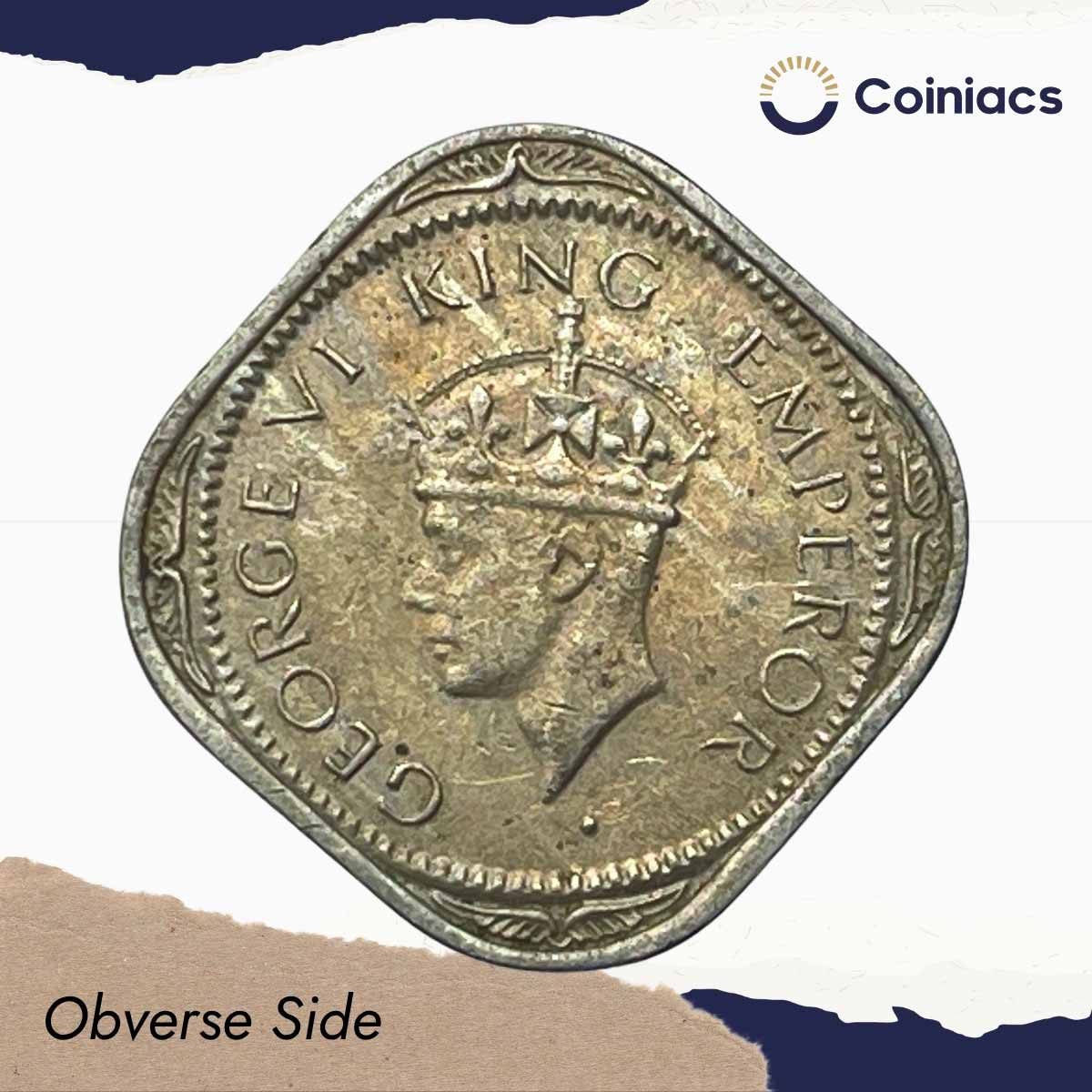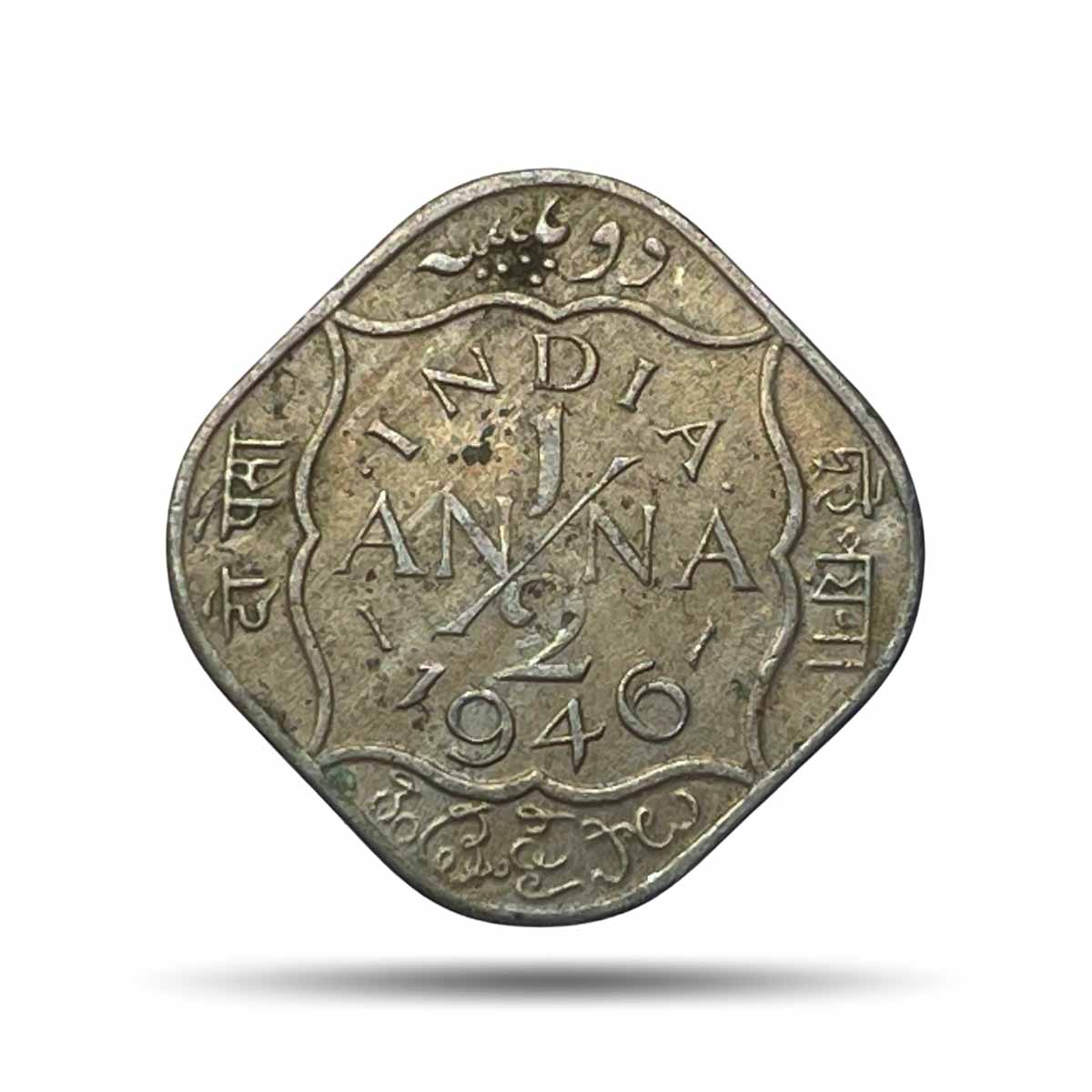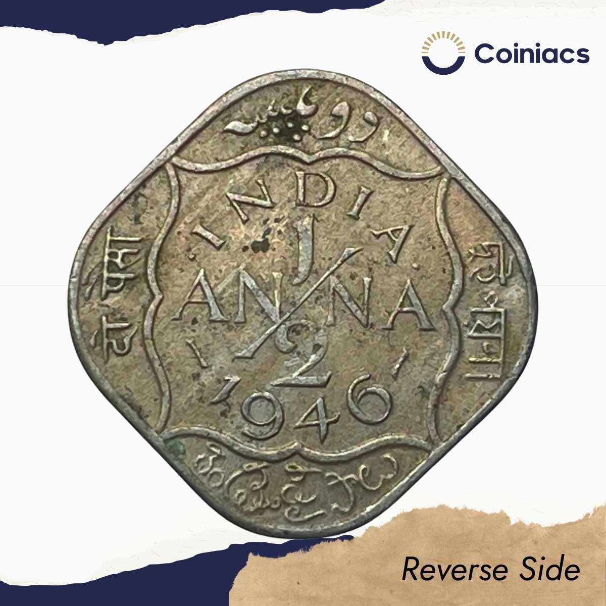 Scarce 1/2 Anna George VI King Emperor 1946 Calcutta Mint Cupro-Nickel Coin, British India Uniform Coinage, XF.