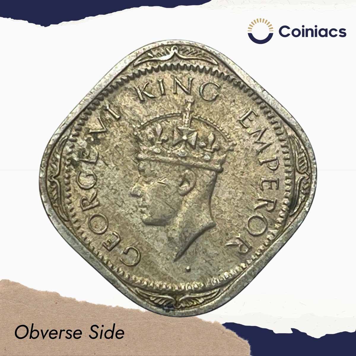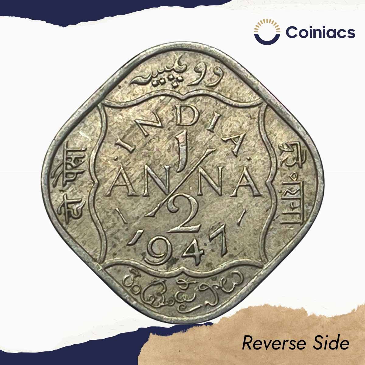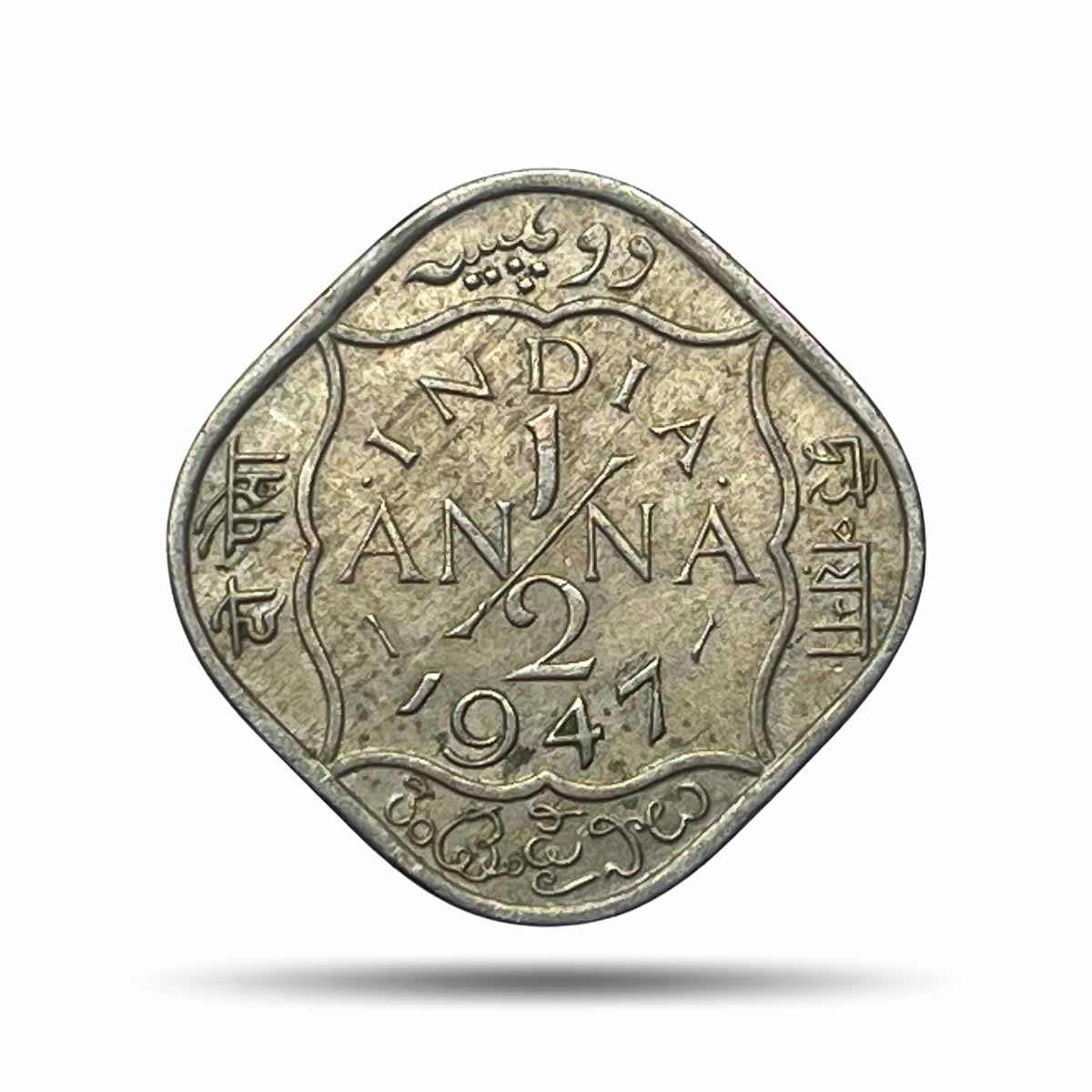 Scarce 1/2 Anna George VI King Emperor 1947 Calcutta Mint Cupro-Nickel Coin, British India Uniform Coinage, XF+.