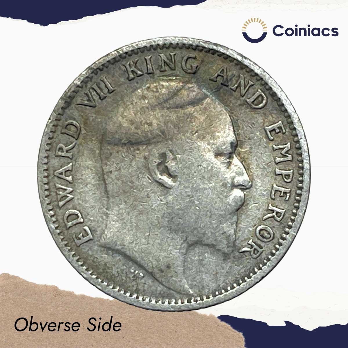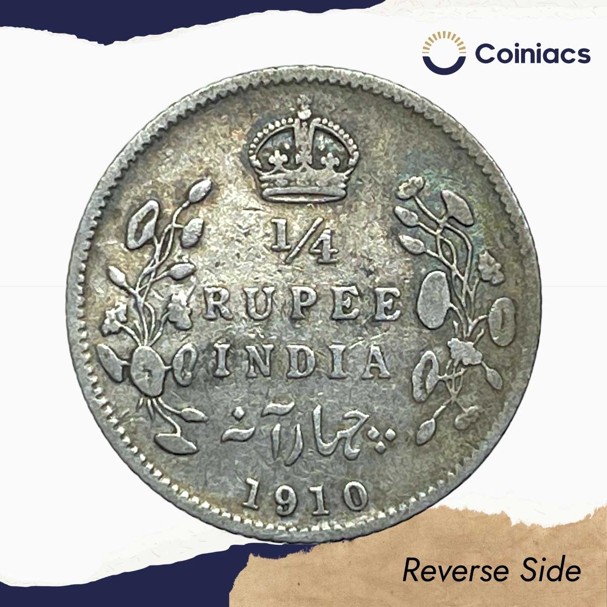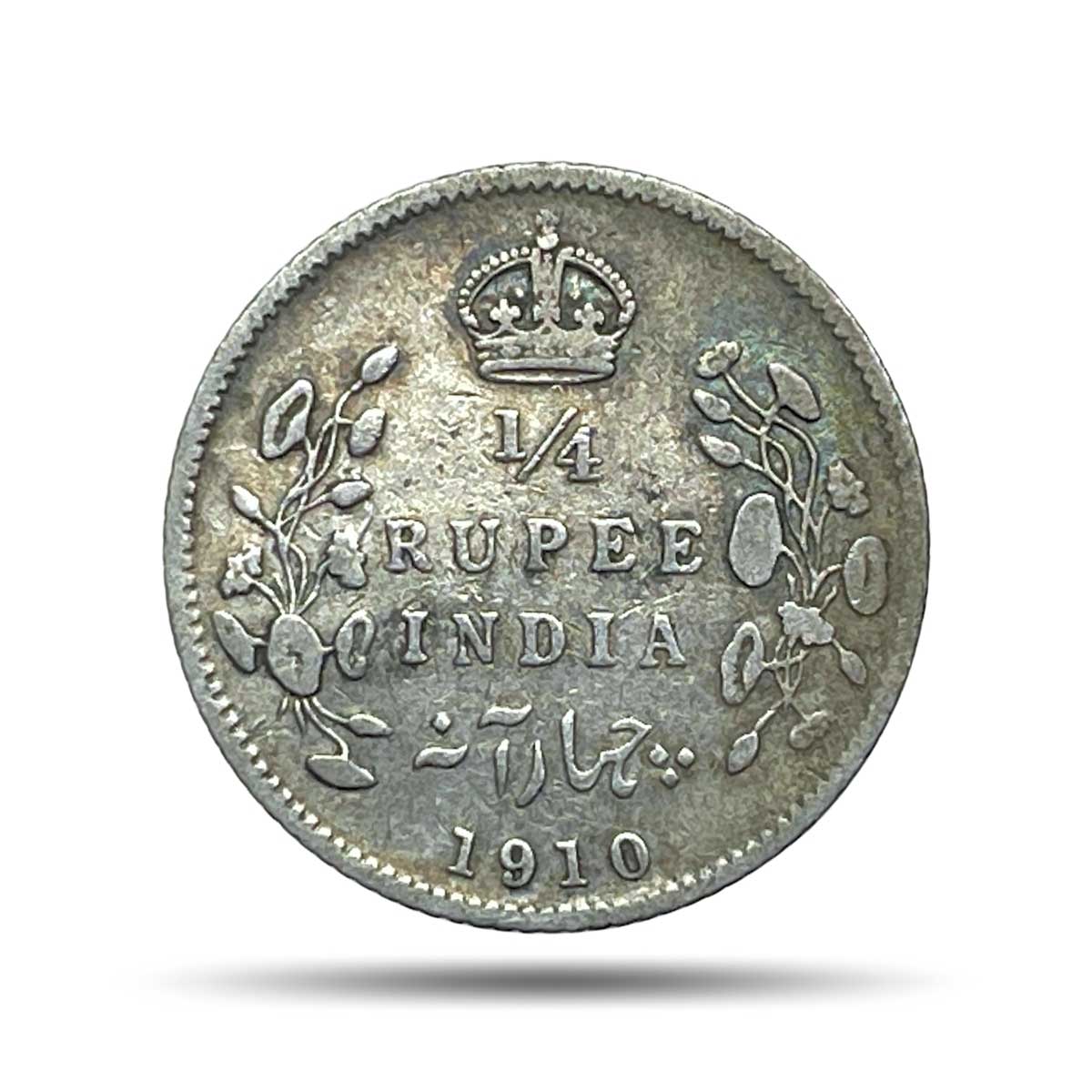 Scarce 1/4 Rupee Edward VII King And Emperor 1910 Calcutta Mint Silver Coin, British India Uniform Coinage, Collectible.