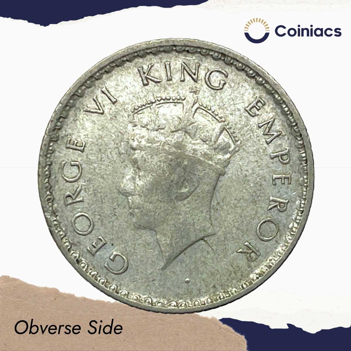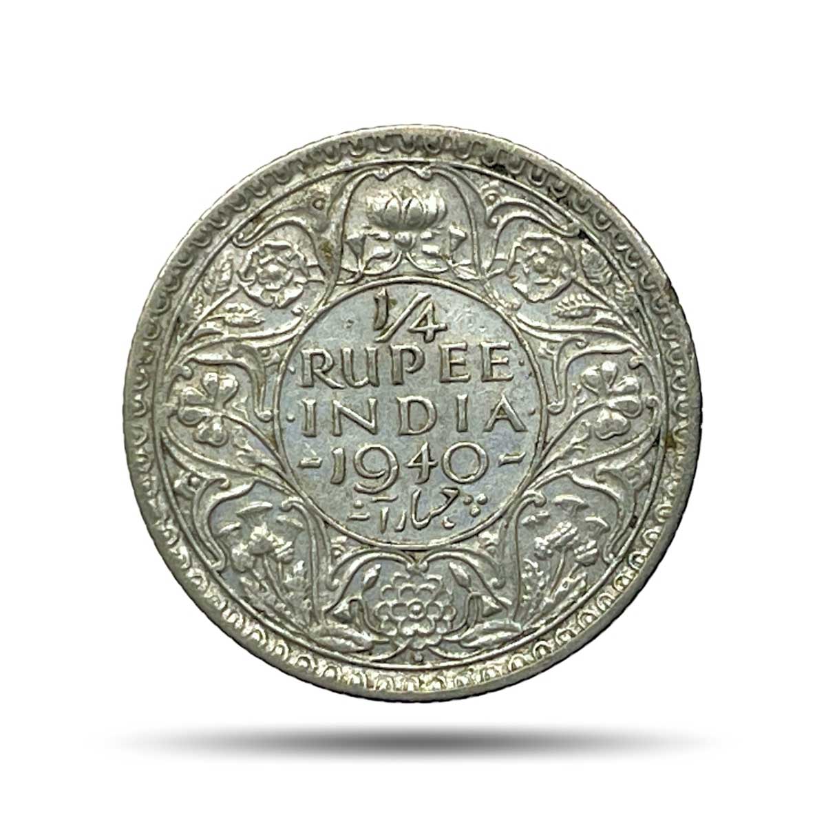 Scarce 1/4 Rupee George VI King Emperor (Head Type – I, Young Head) 1940 CE Bombay Mint Silver Coin, British India Uniform Coinage, Collectible.