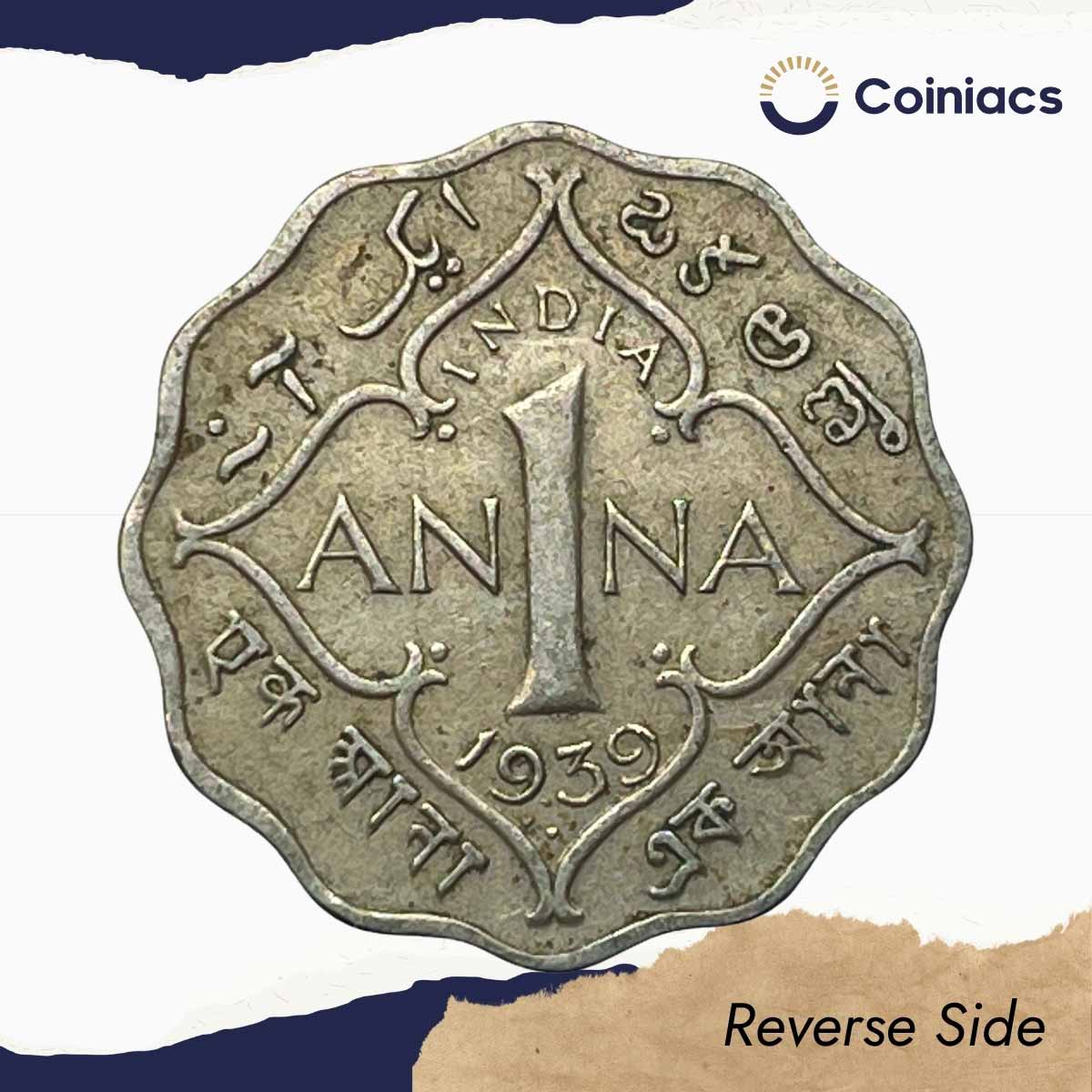 Scarce 1 Anna George VI King Emperor 1939 Bombay Mint Cupro-Nickel Coin, British India Uniform Coinage, XF.