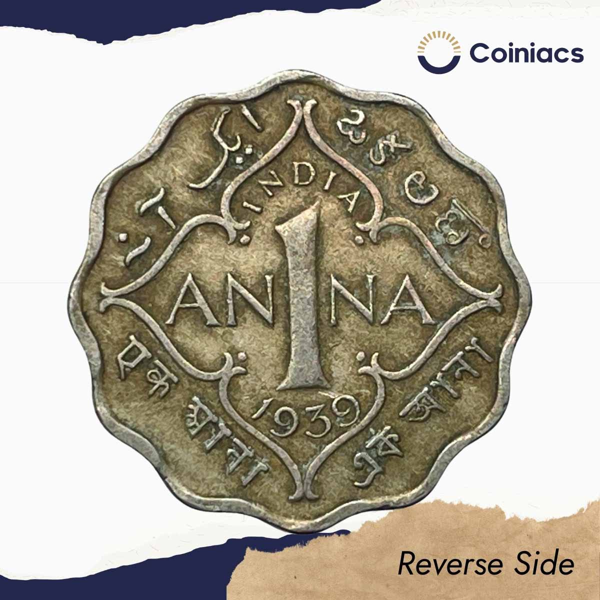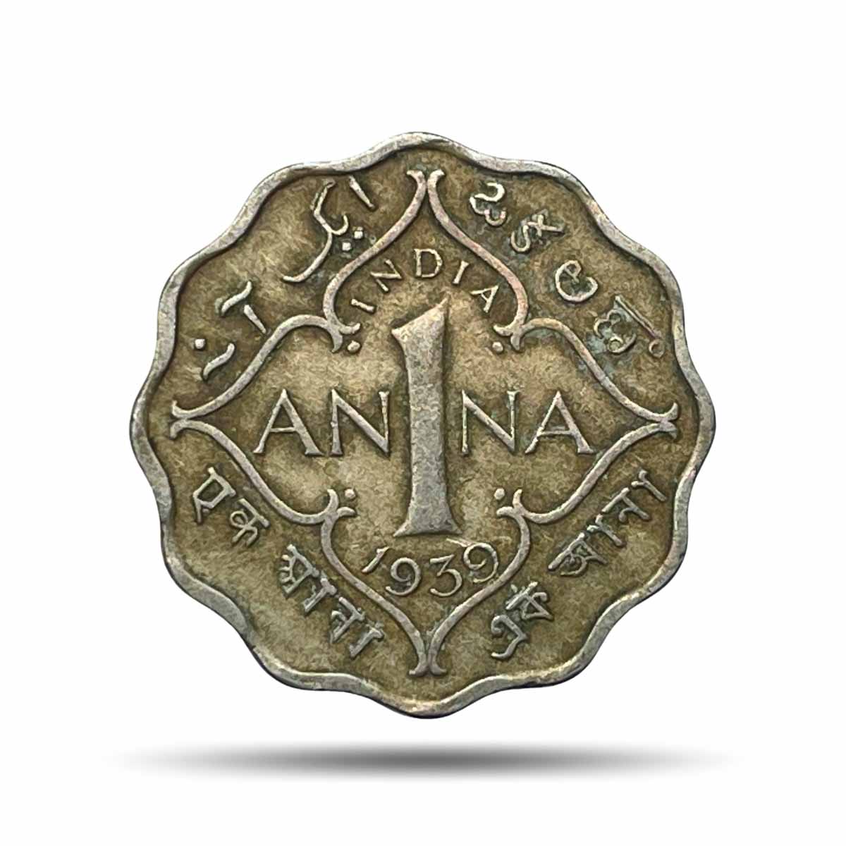 Scarce 1 Anna George VI King Emperor 1939 Calcutta Mint Cupro-Nickel Coin, British India Uniform Coinage, XF.