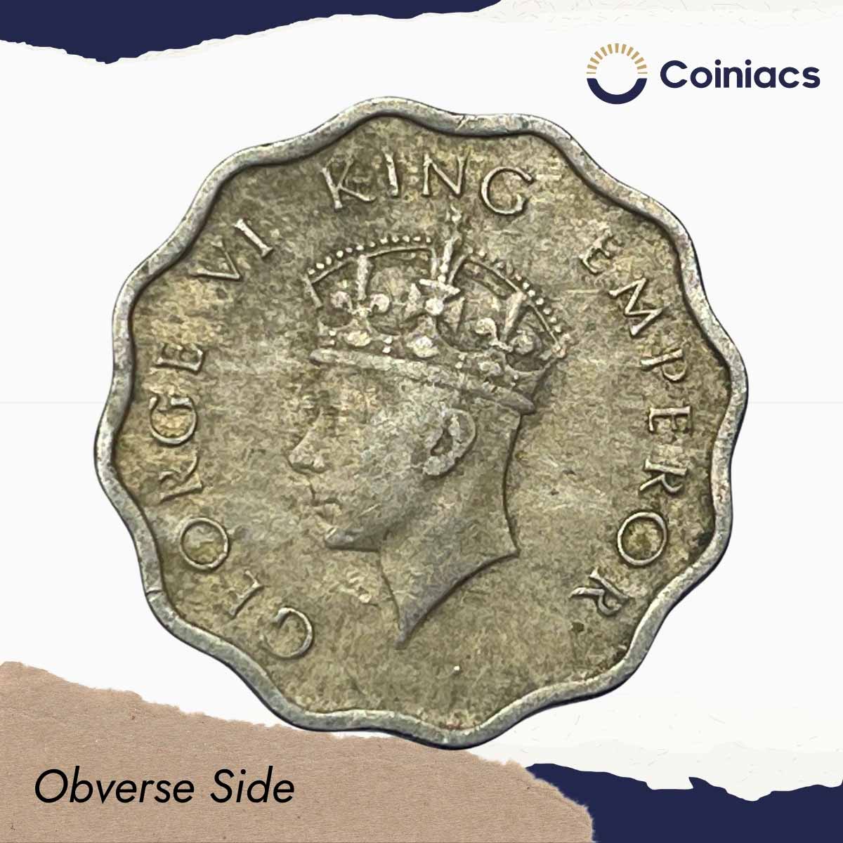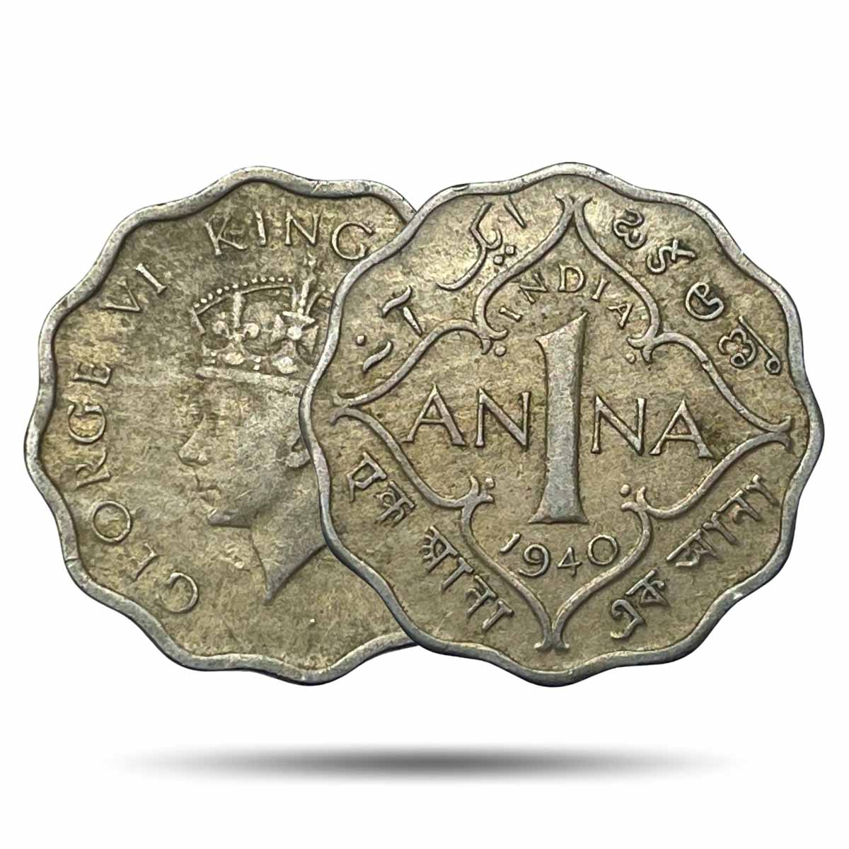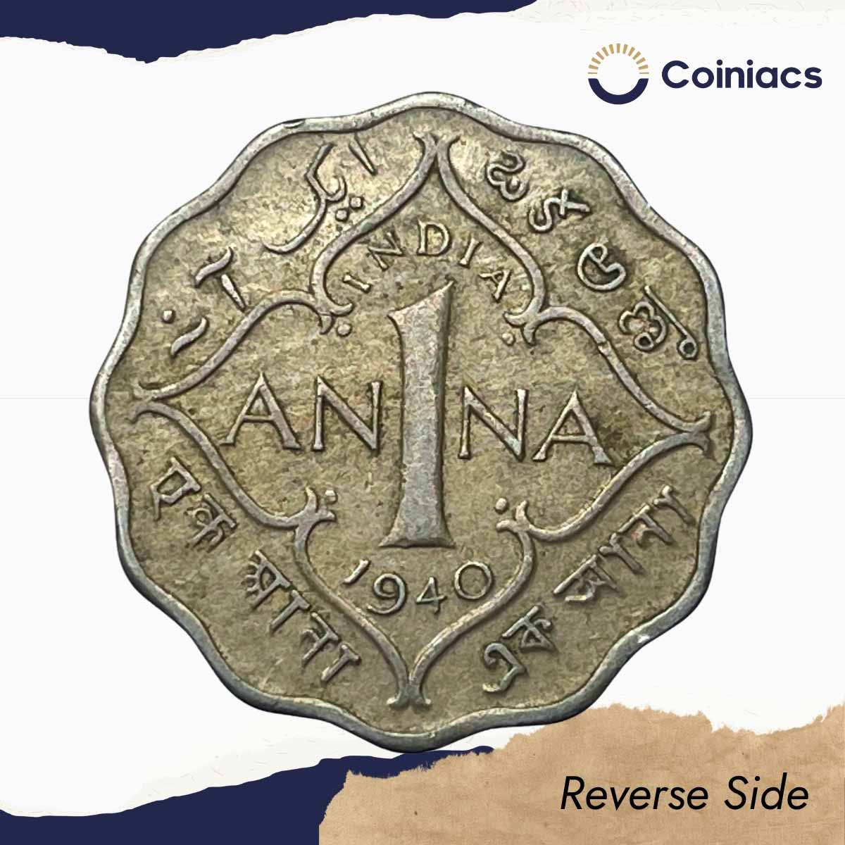 Scarce 1 Anna George VI King Emperor 1940 Young Head (Head Type 1) Calcutta Mint Copper-Nickel Coin, British India Uniform Coinage, XF.