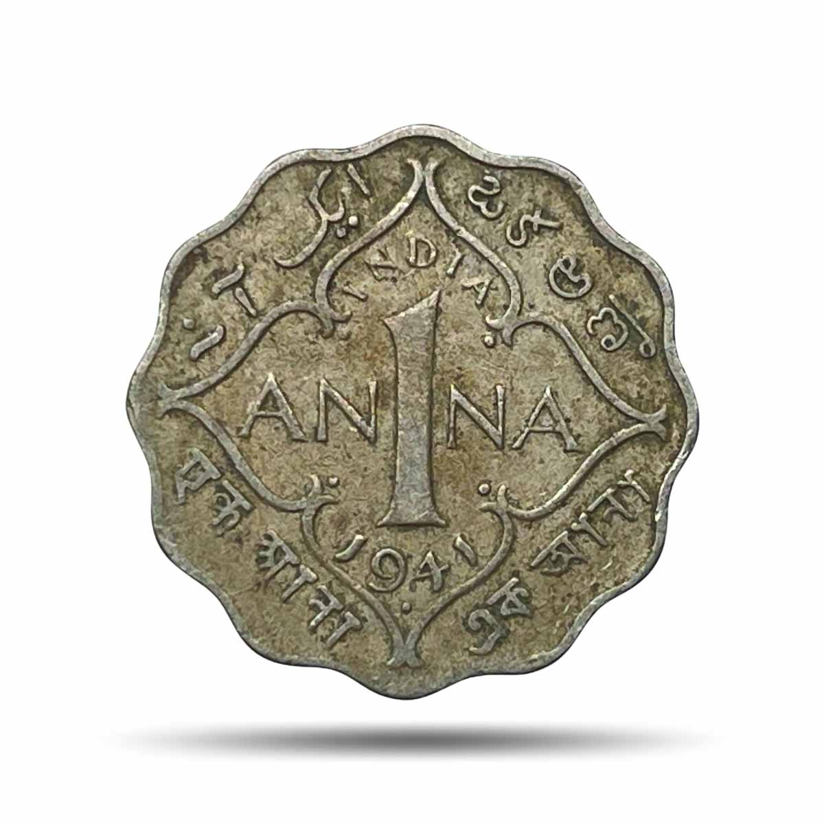 Scarce 1 Anna George VI King Emperor 1941 Bombay Mint Cupro-Nickel Coin, British India Uniform Coinage, Collectible.