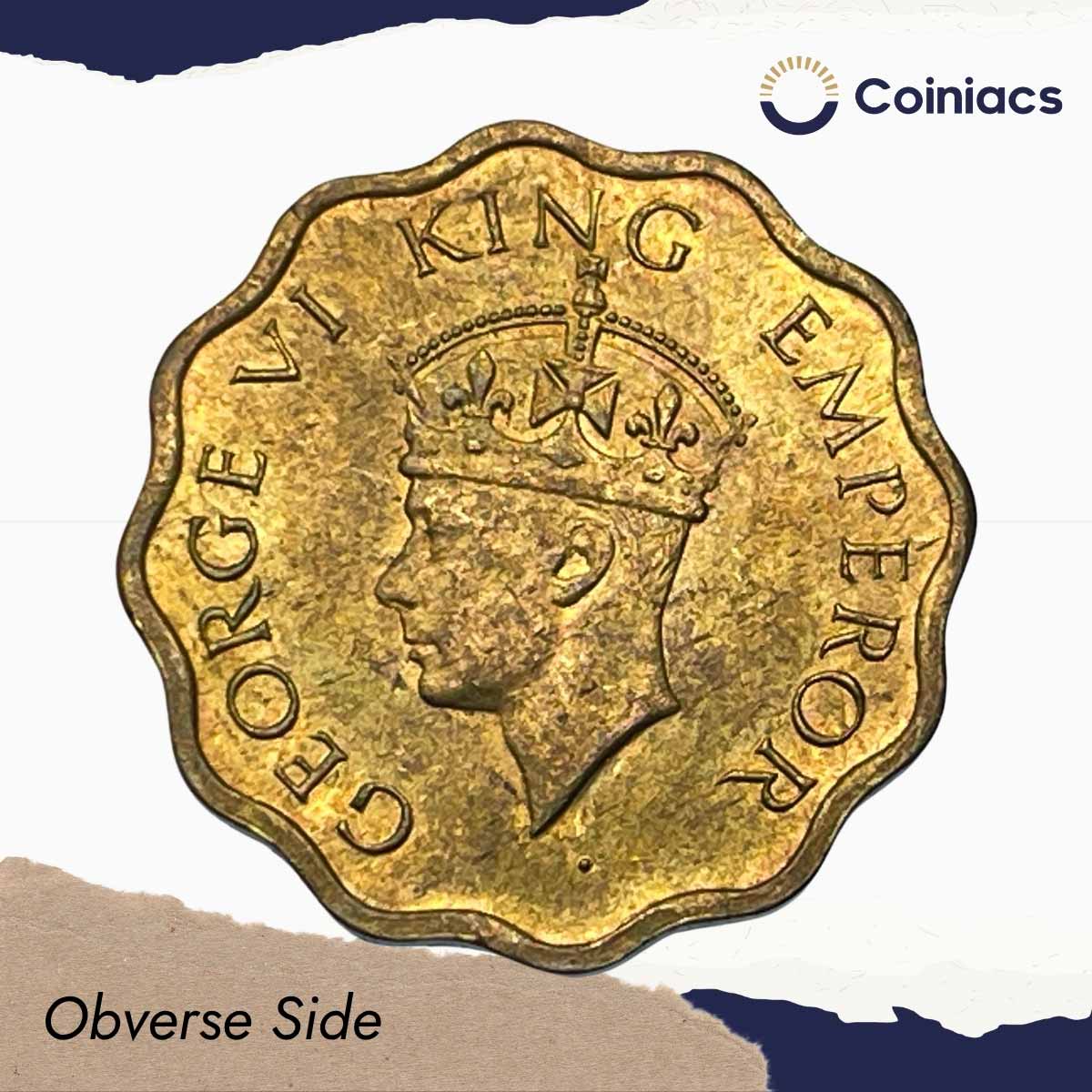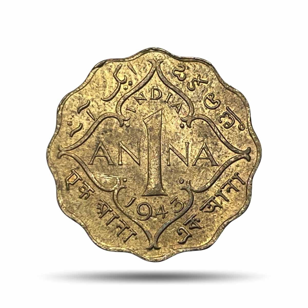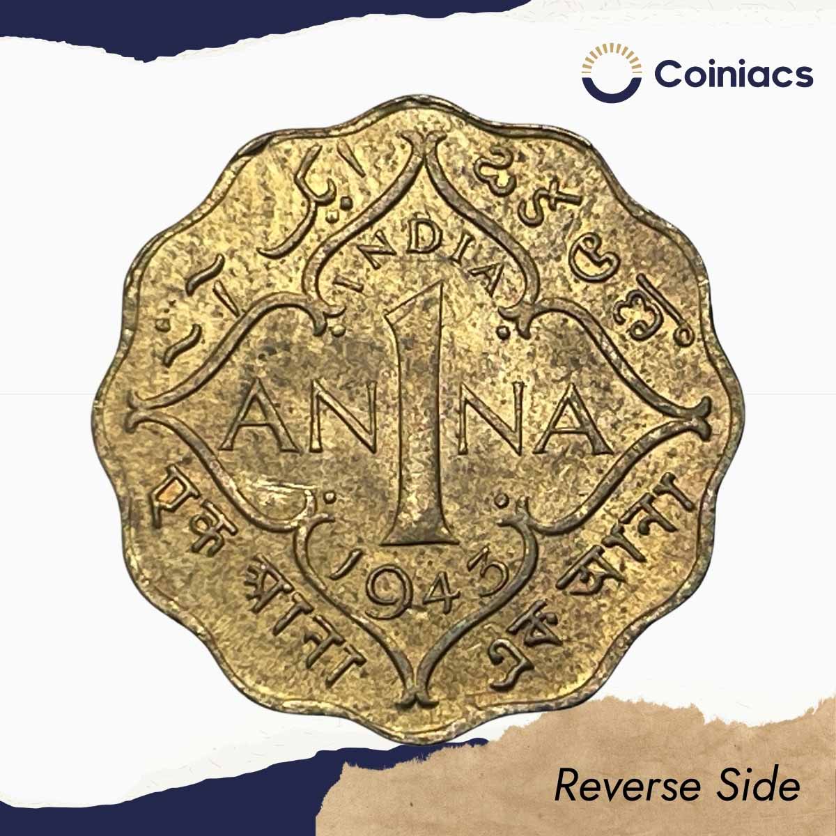 Scarce 1 Anna George VI King Emperor 1943 Calcutta Mint Nickel-Brass Coin, British India Uniform Coinage, UNC.