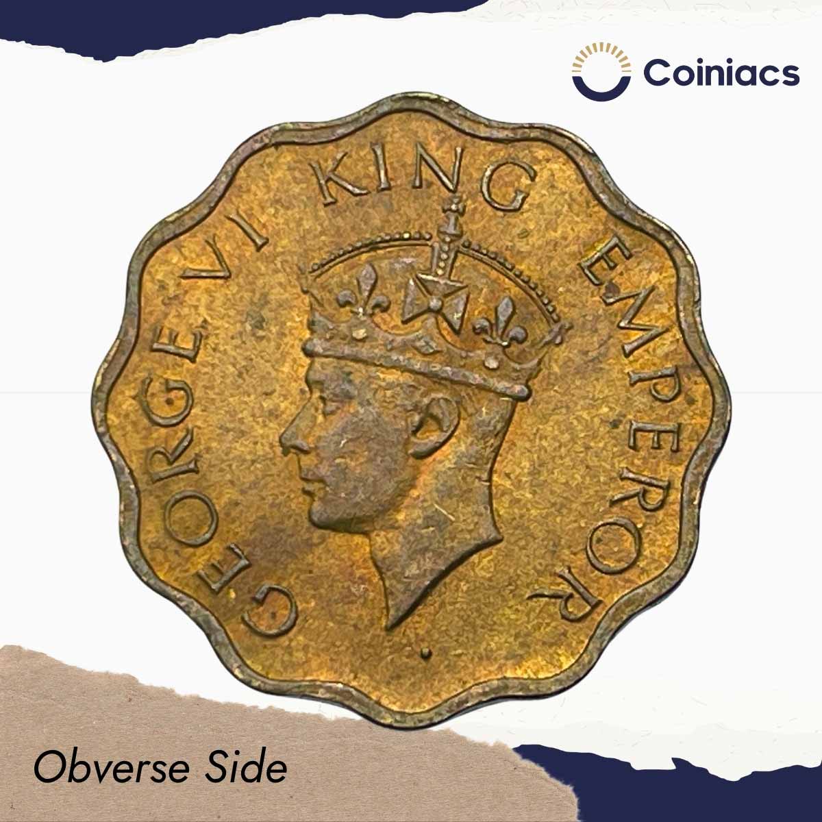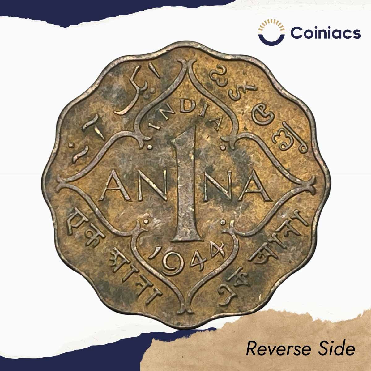 Scarce 1 Anna George VI King Emperor 1944 Calcutta Mint Nickel-Brass Coin, British India Uniform Coinage, UNC.