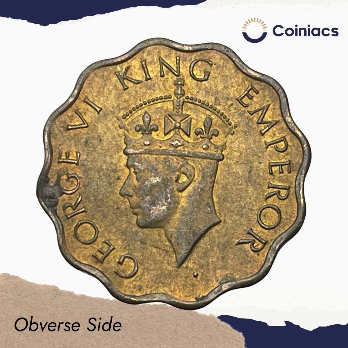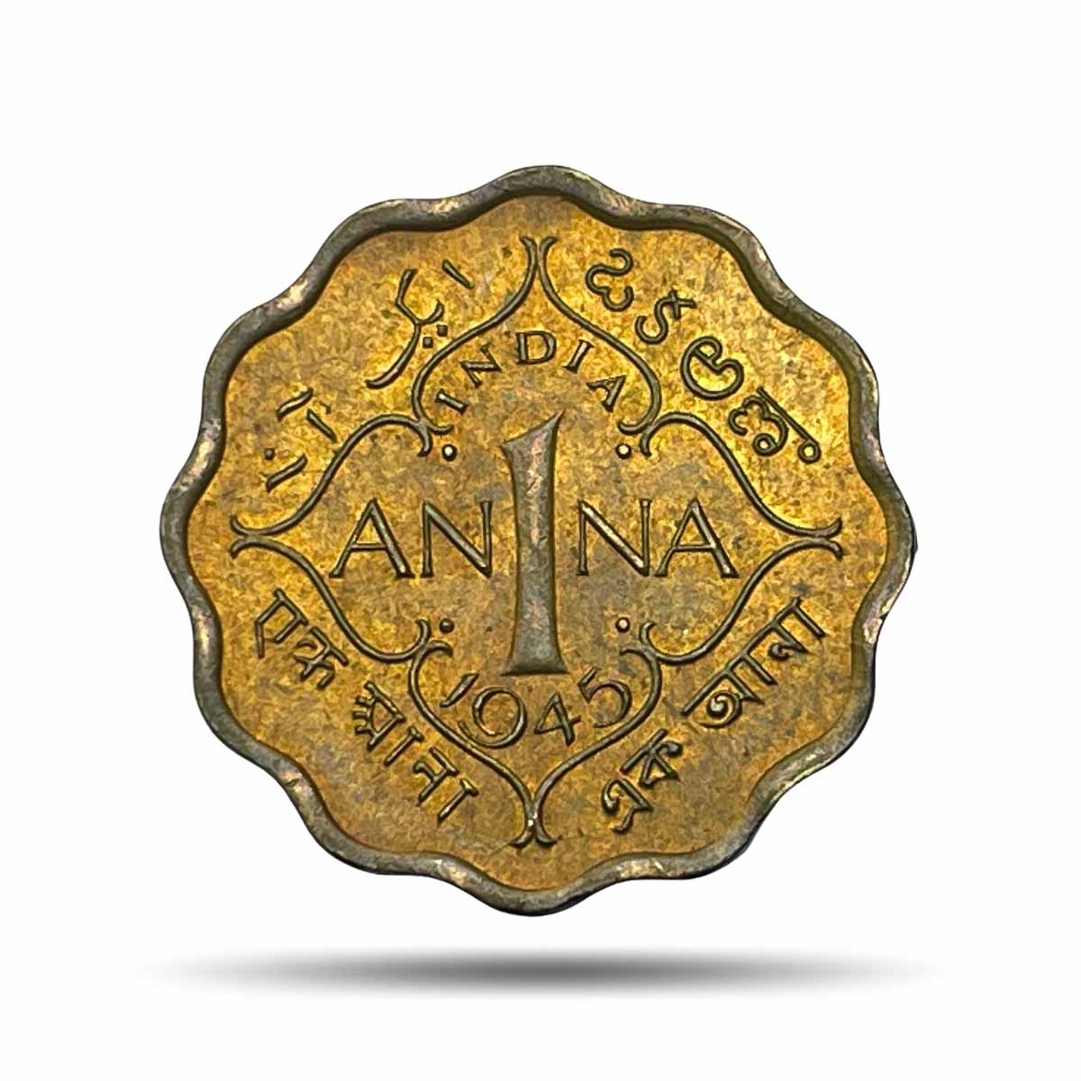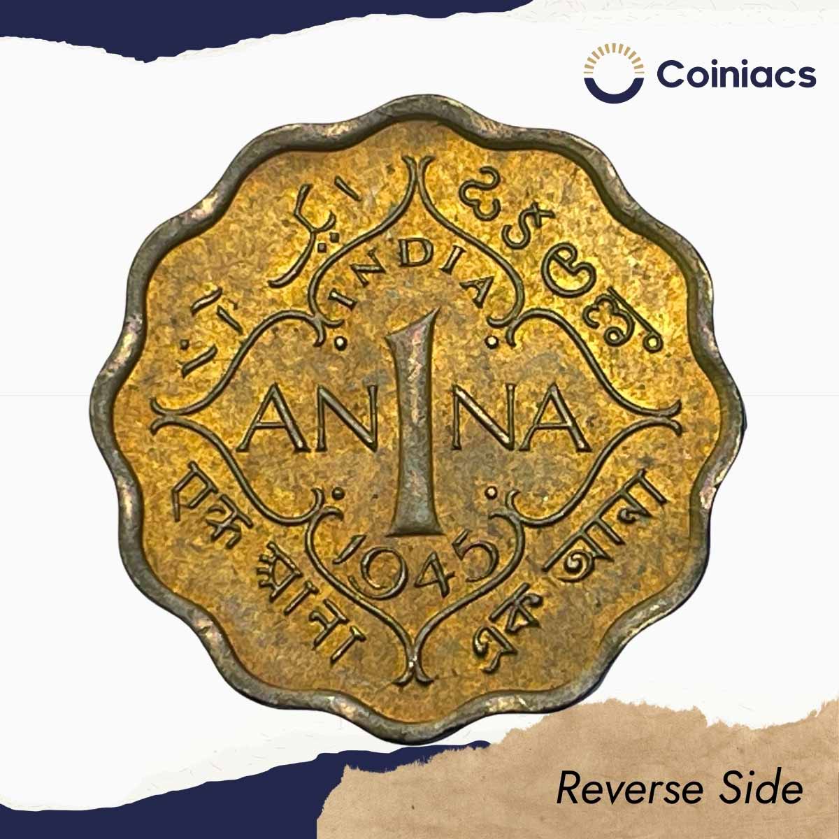 Scarce 1 Anna George VI King Emperor 1945 Calcutta Mint Nickel-Brass Coin, British India Uniform Coinage, UNC.