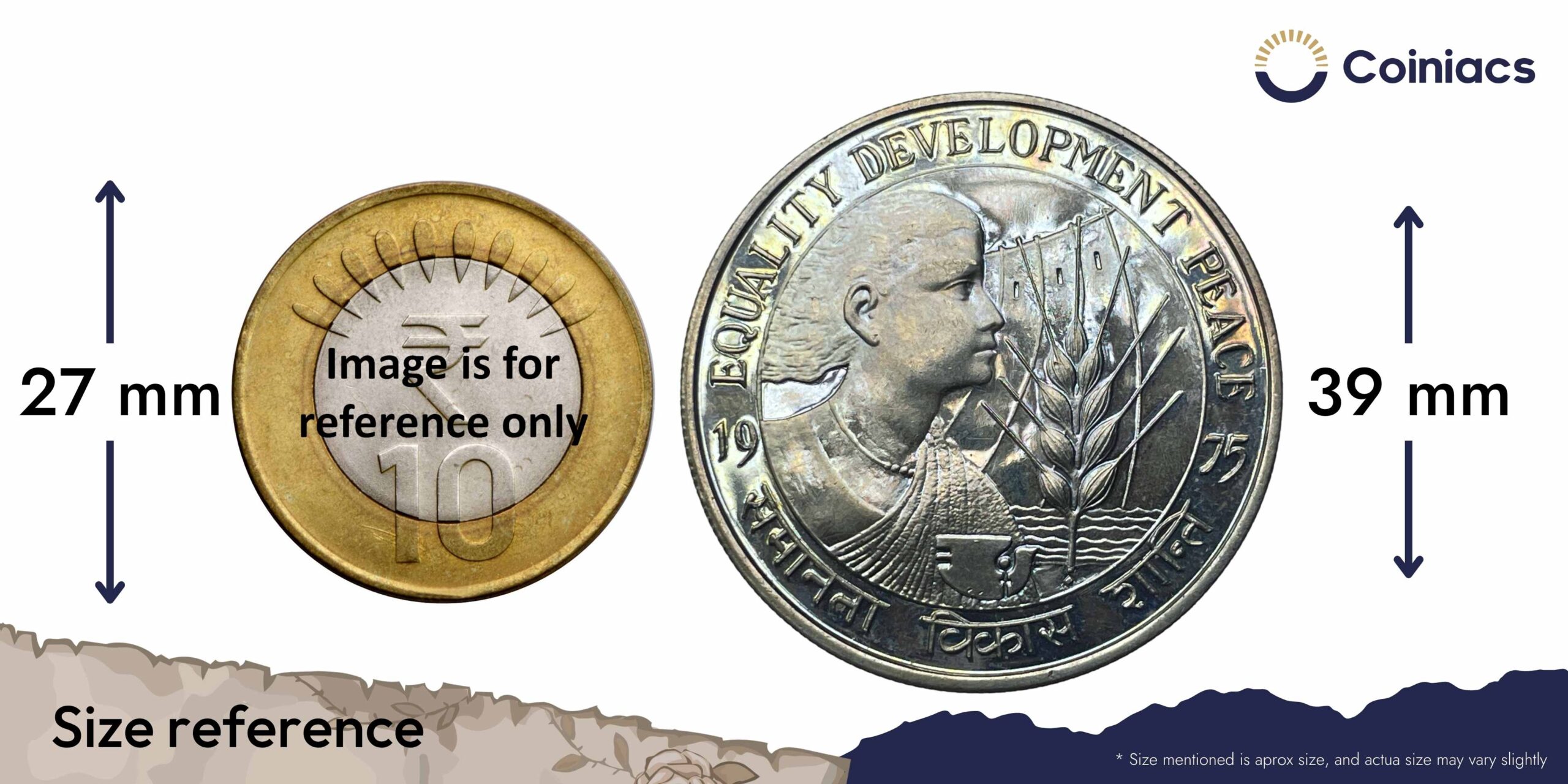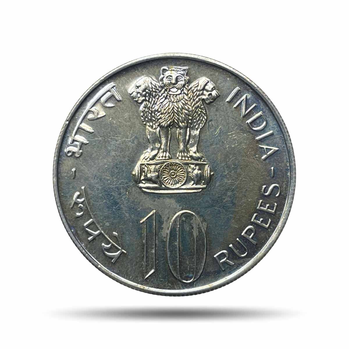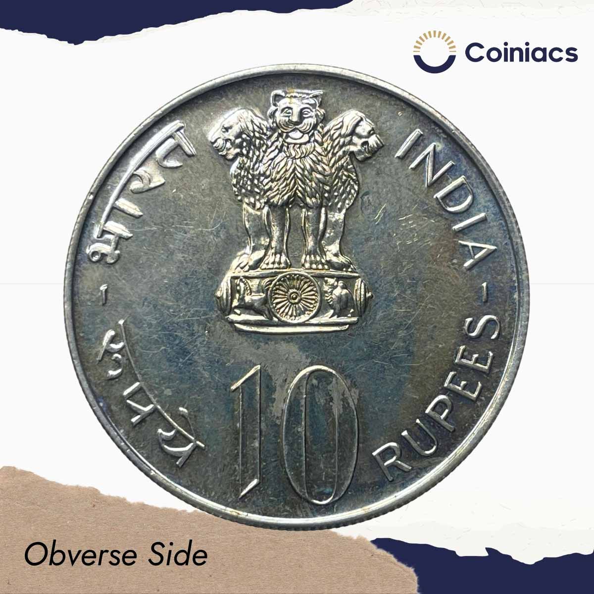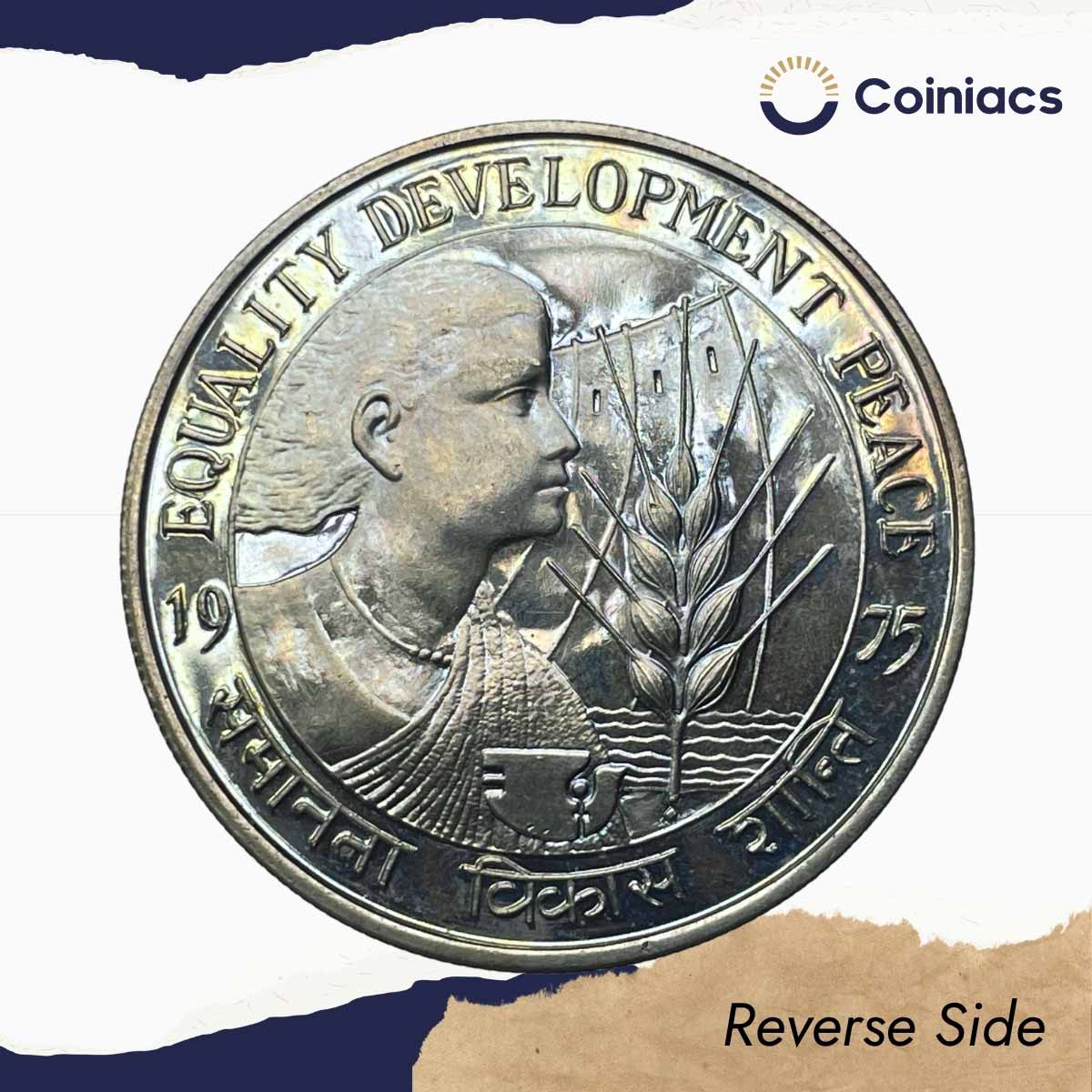 Scarce 10 Rupees Equality Development Peace 1975 Mumbai Mint Commemorative Copper-Nickel Coin, Republic India, UNC.