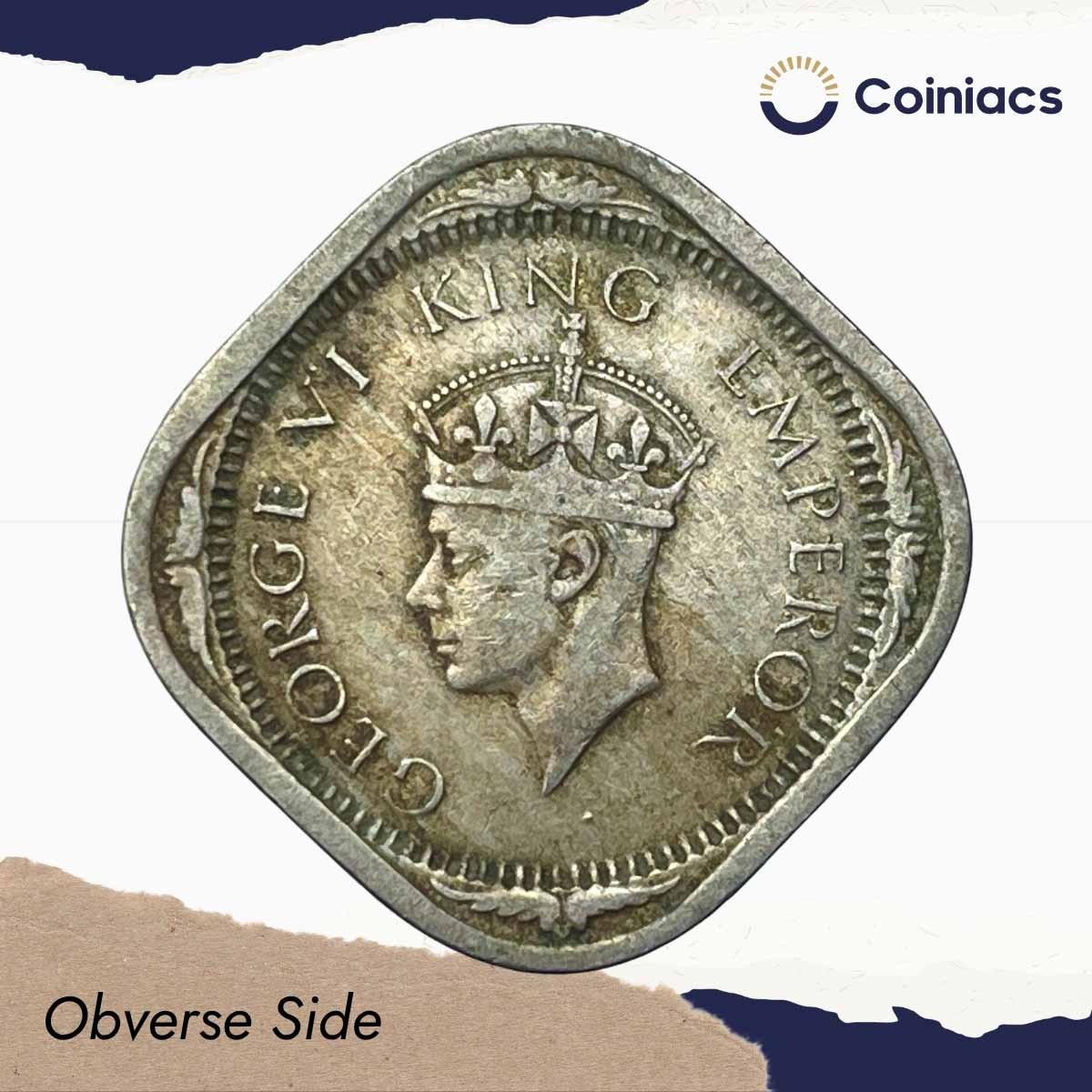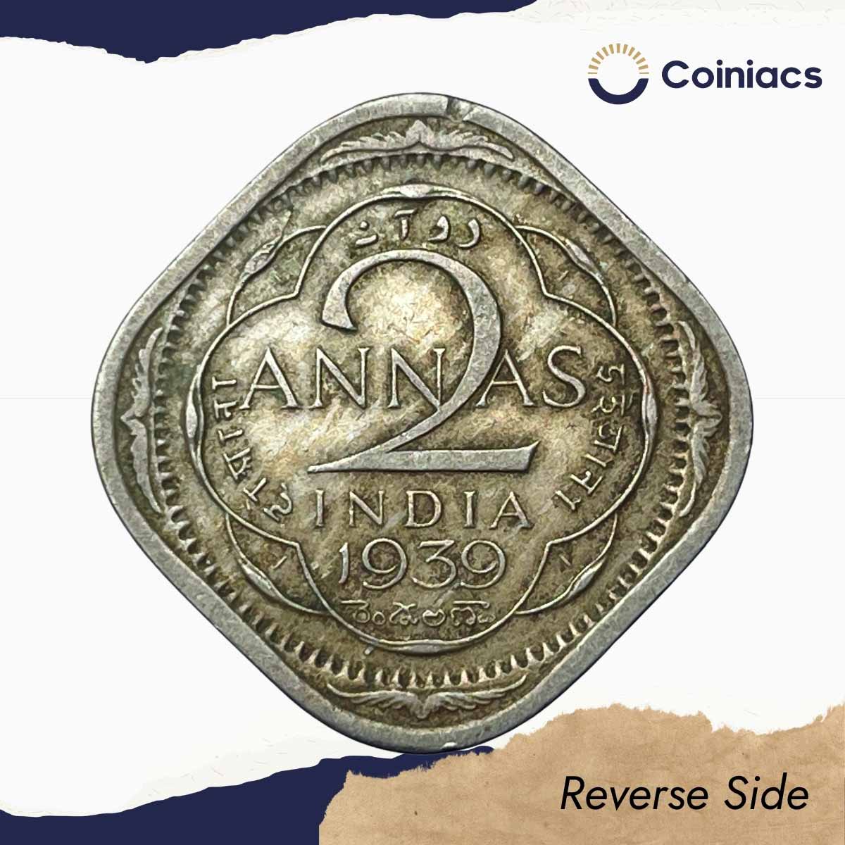 Scarce 2 Annas George VI King Emperor 1939 Mature Head (Head Type 2) Calcutta Mint Copper-Nickel Coin, British India Uniform Coinage, XF.