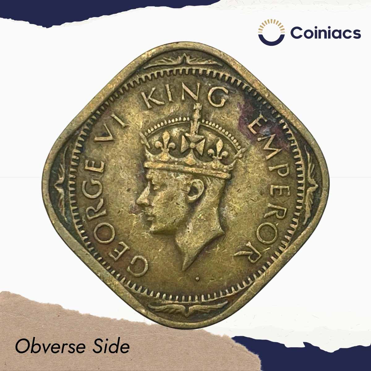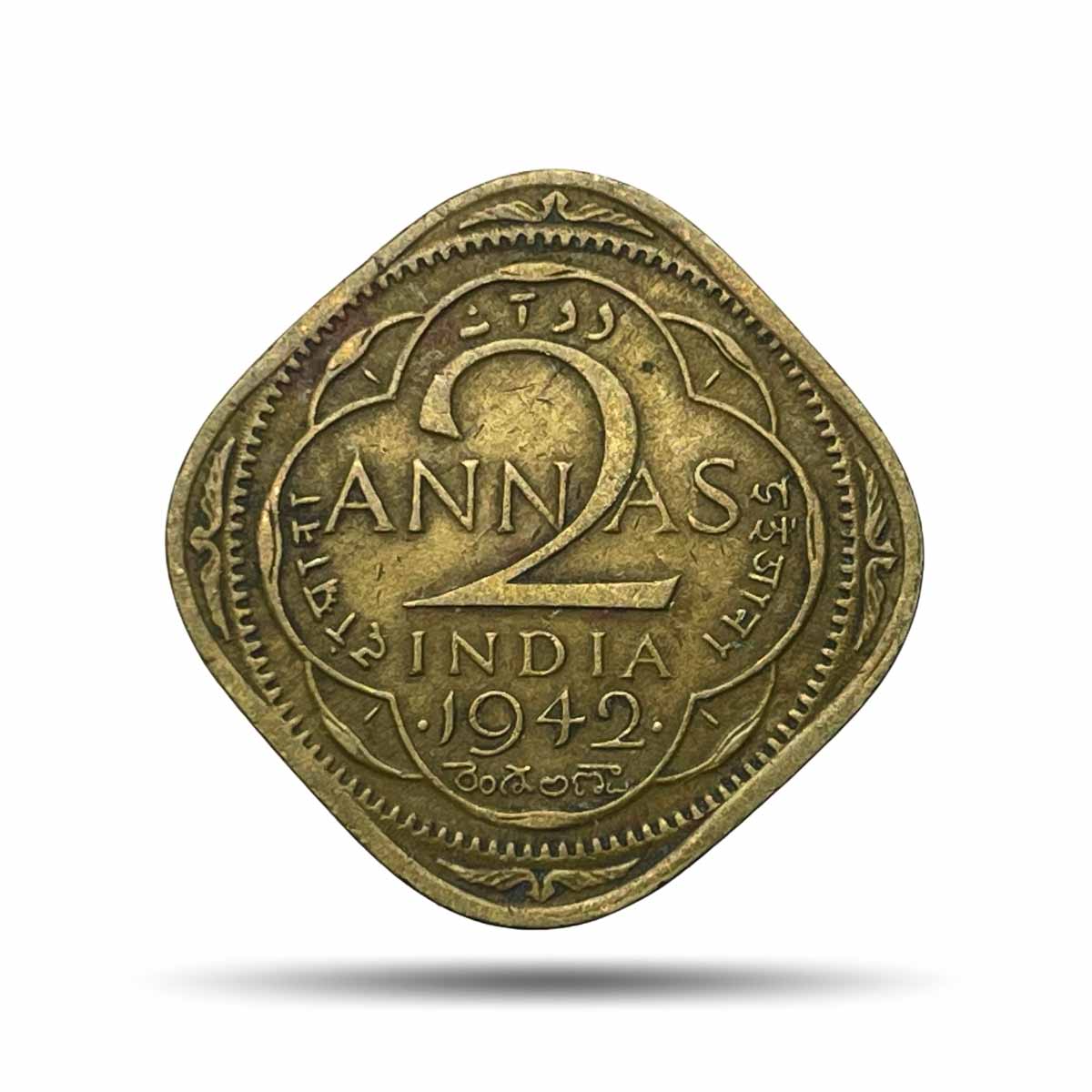 Scarce 2 Annas George VI King Emperor 1942 (Large ‘4’) Bombay Mint Nickel-Brass Coin, British India Uniform Coinage, Collectible.