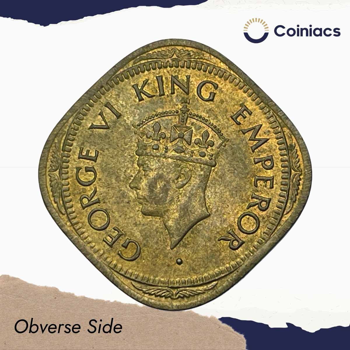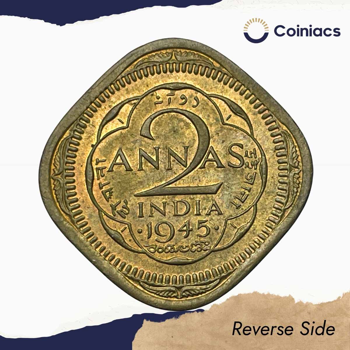 Scarce 2 Annas George VI King Emperor 1945 Bombay Mint Nickel-Brass Coin, British India Uniform Coinage, UNC.