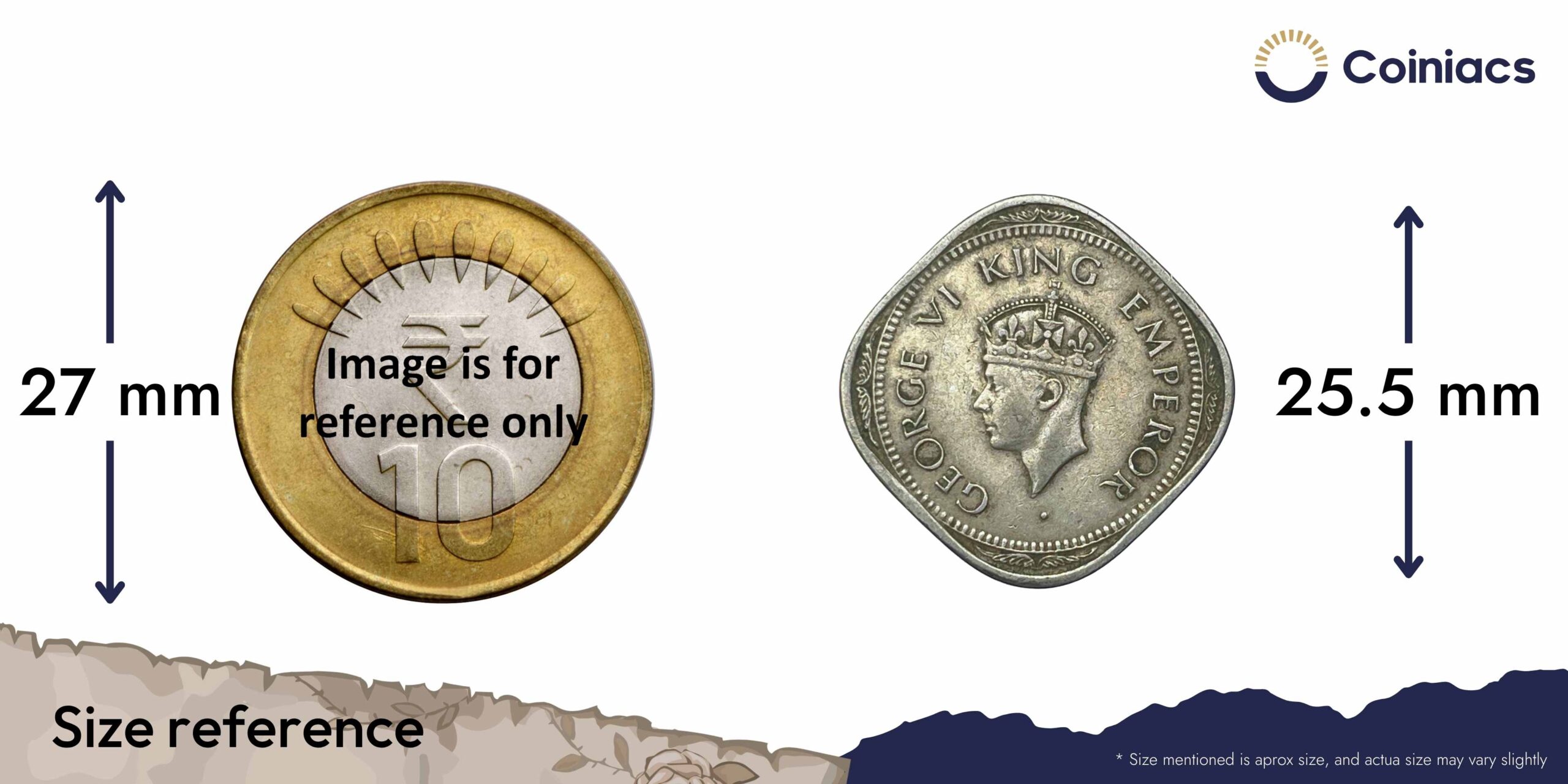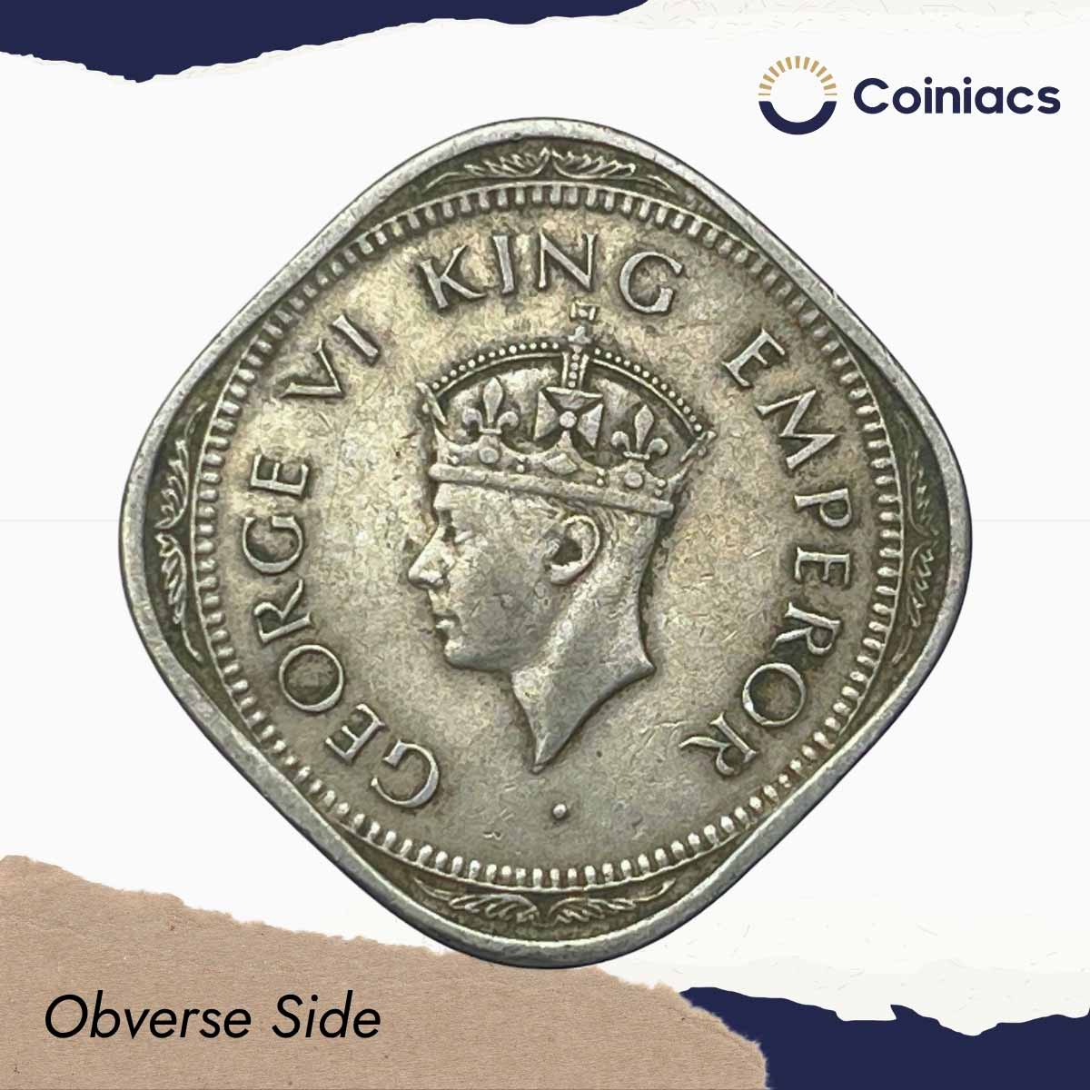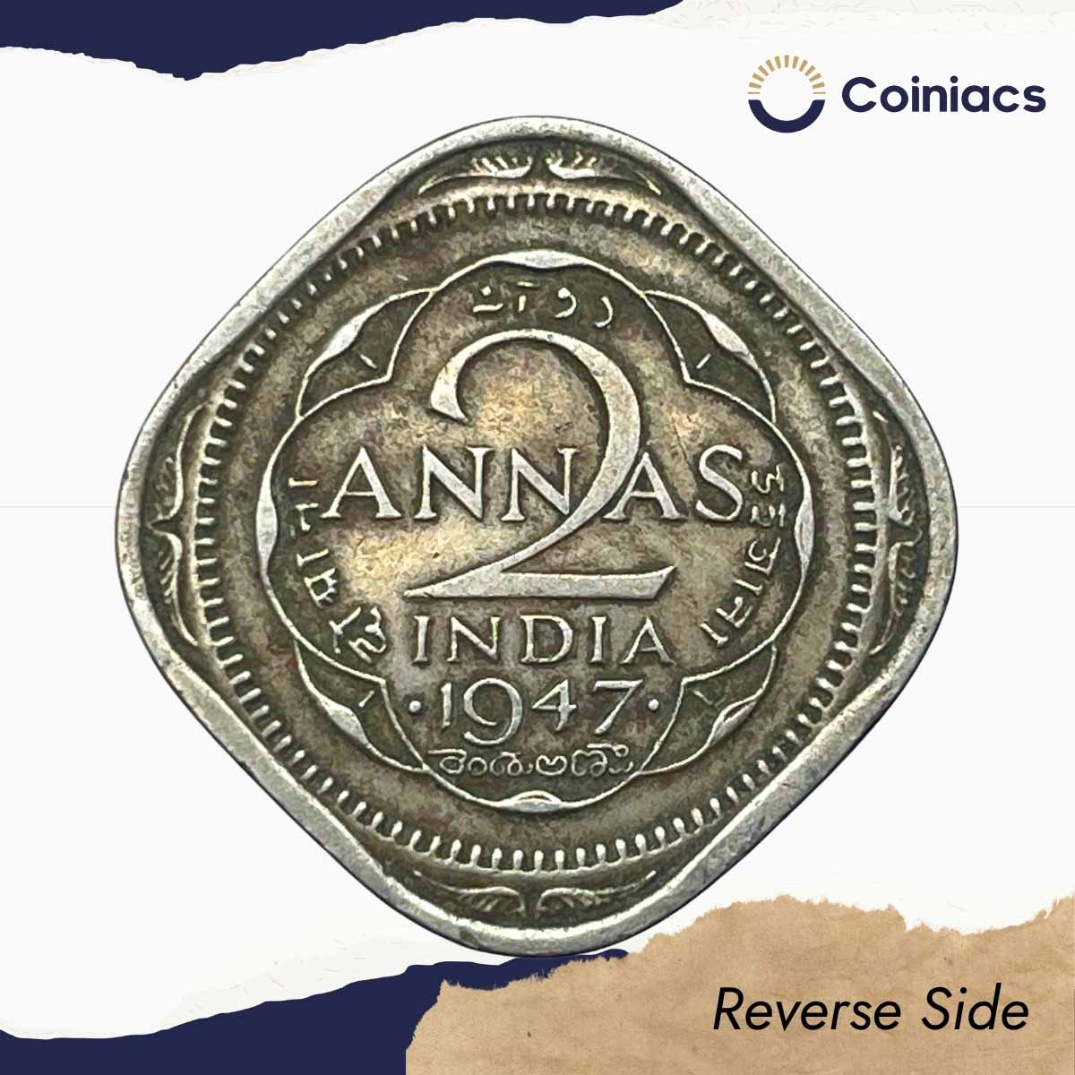 Scarce 2 Annas George VI King Emperor 1947 (Thin Dot) Bombay Mint Cupro-Nickel Coin, British India Uniform Coinage, Collectible.