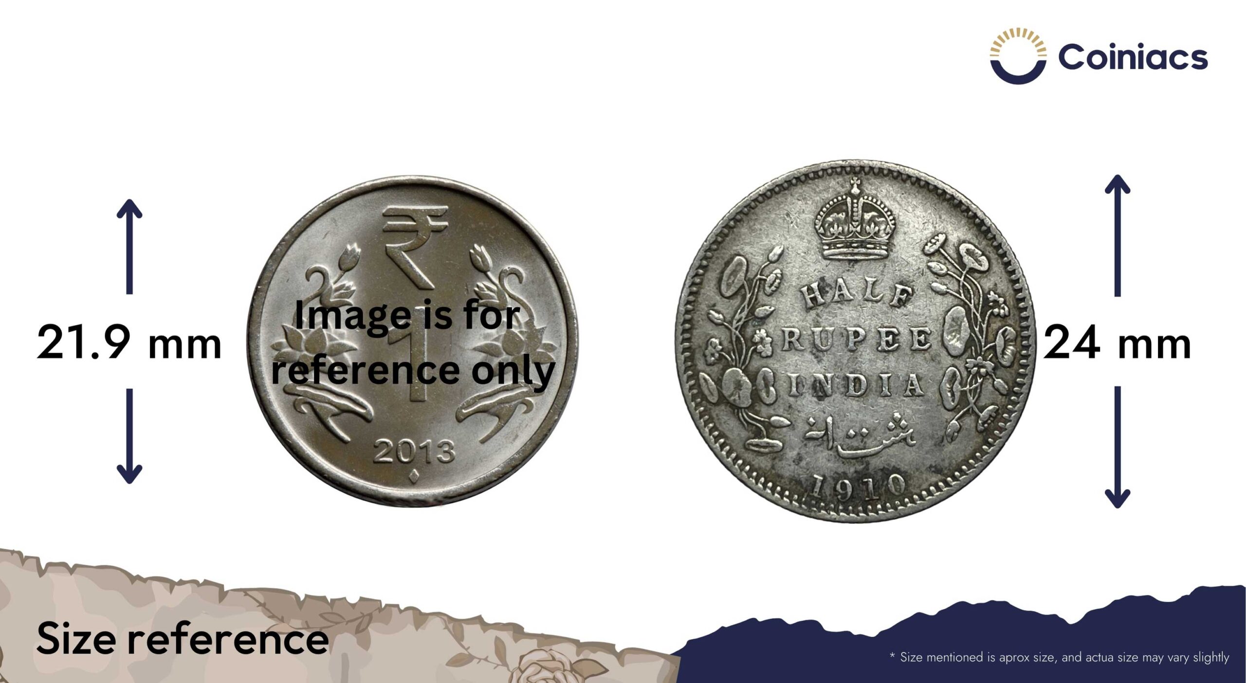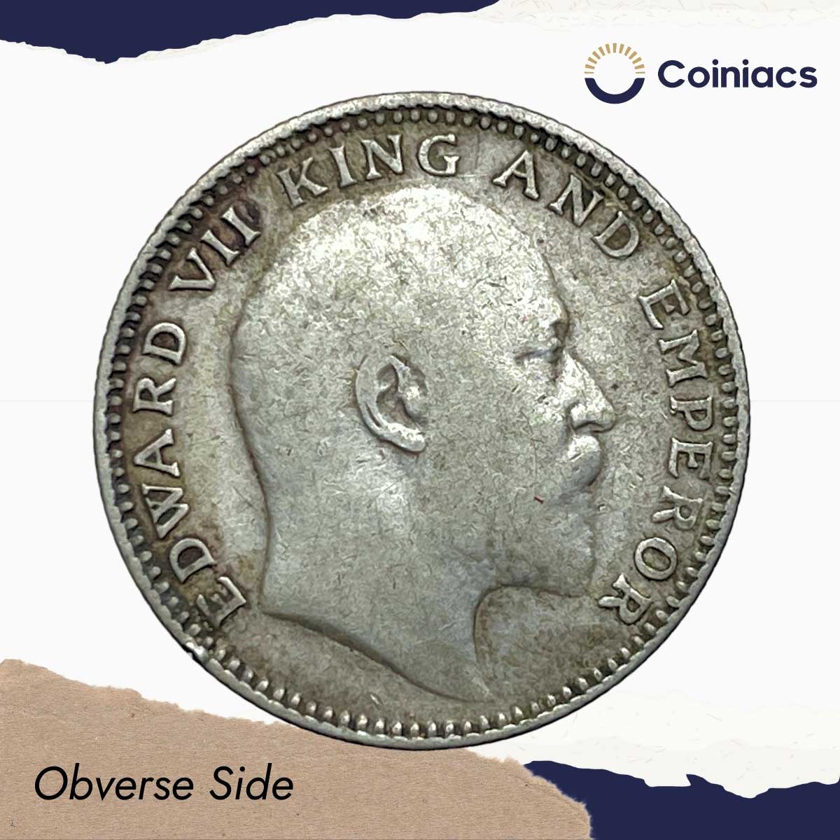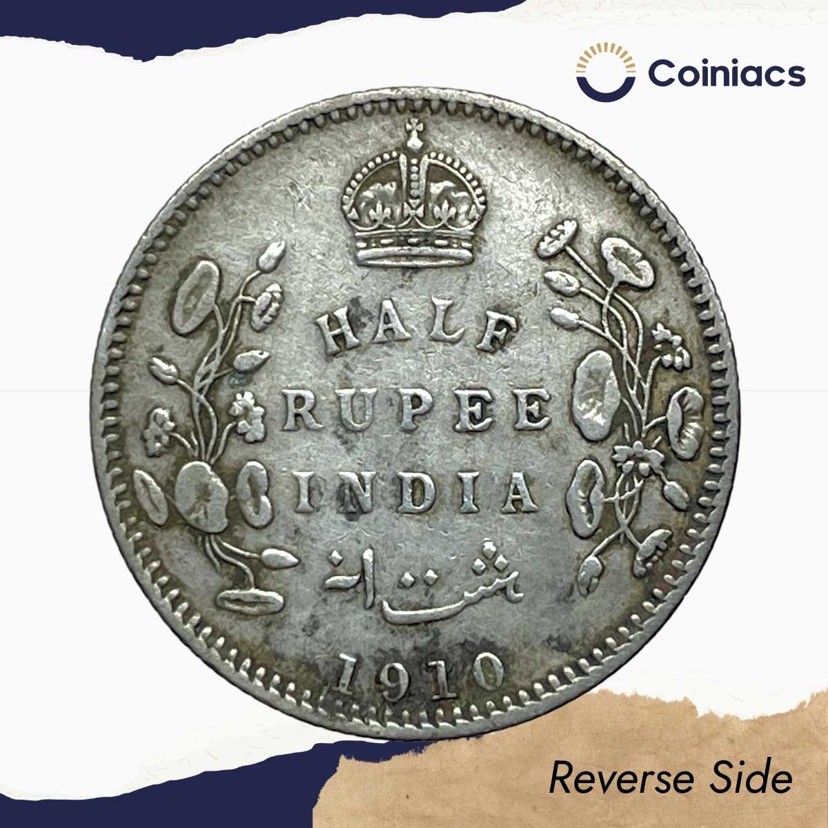 Scarce Half Rupee Edward VII 1910 Calcutta Mint Silver Coin, British India Uniform Coinage, Collectible.