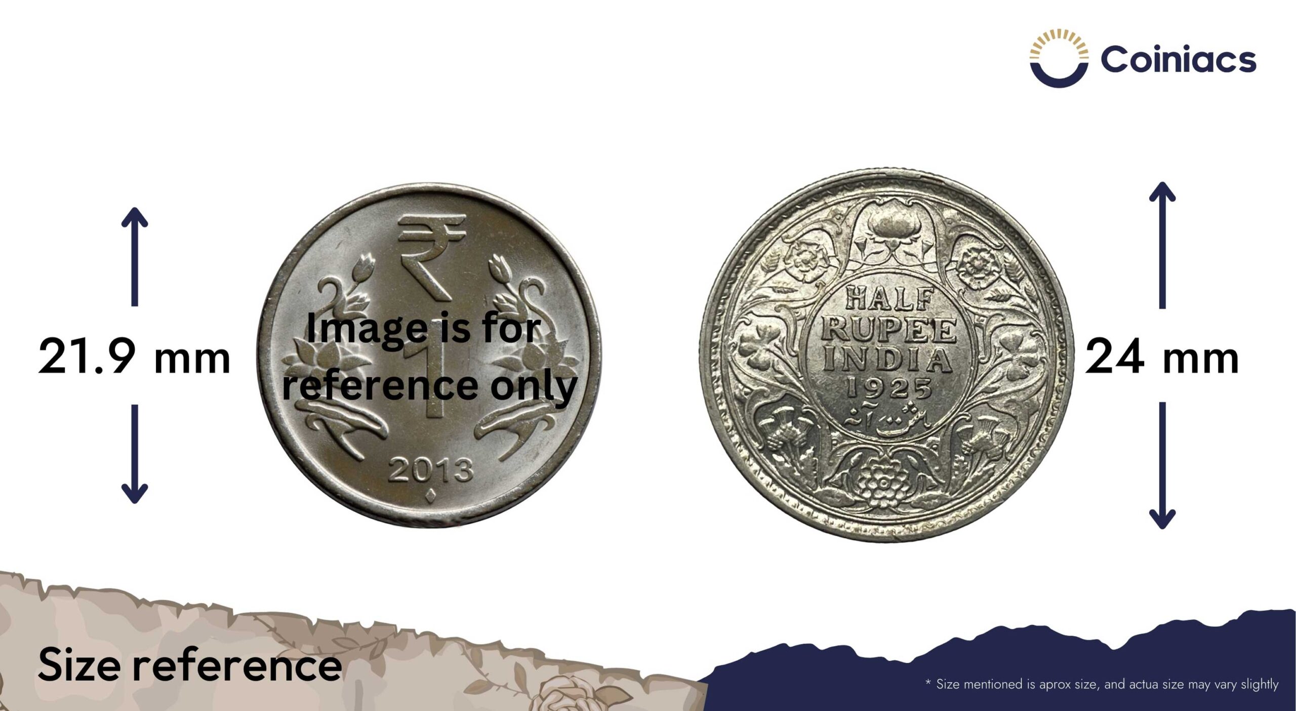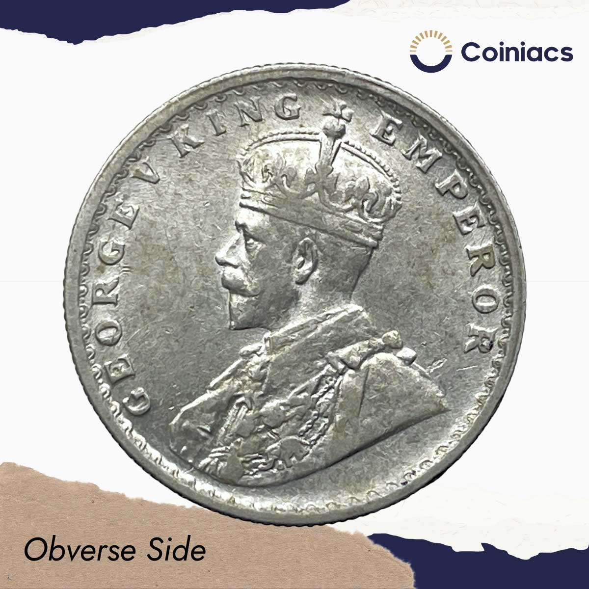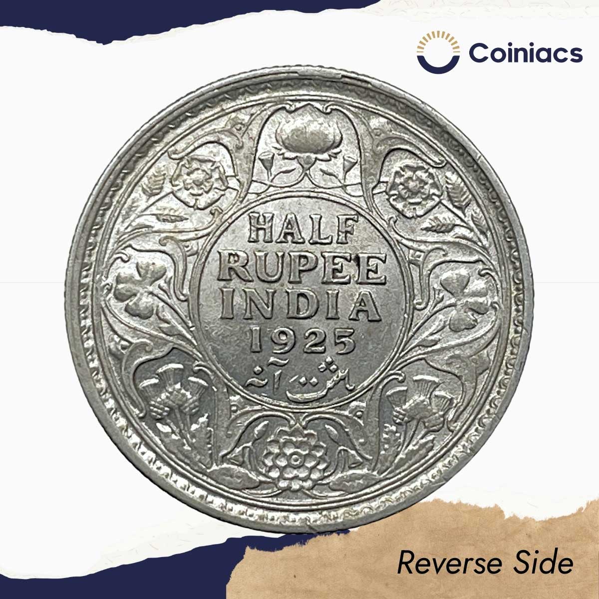 Scarce Half Rupee George V King Emperor 1925 Calcutta Mint Silver Coin, British India Uniform Coinage, Collectible.
