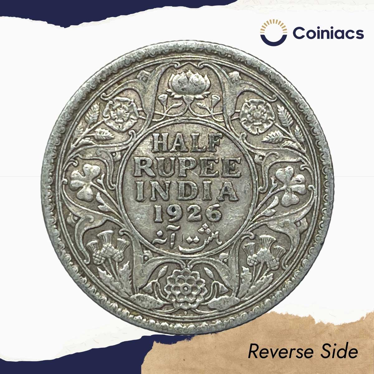 Scarce Half Rupee George V King Emperor 1926 Bombay Mint Silver Coin, British India Uniform Coinage, Collectible.
