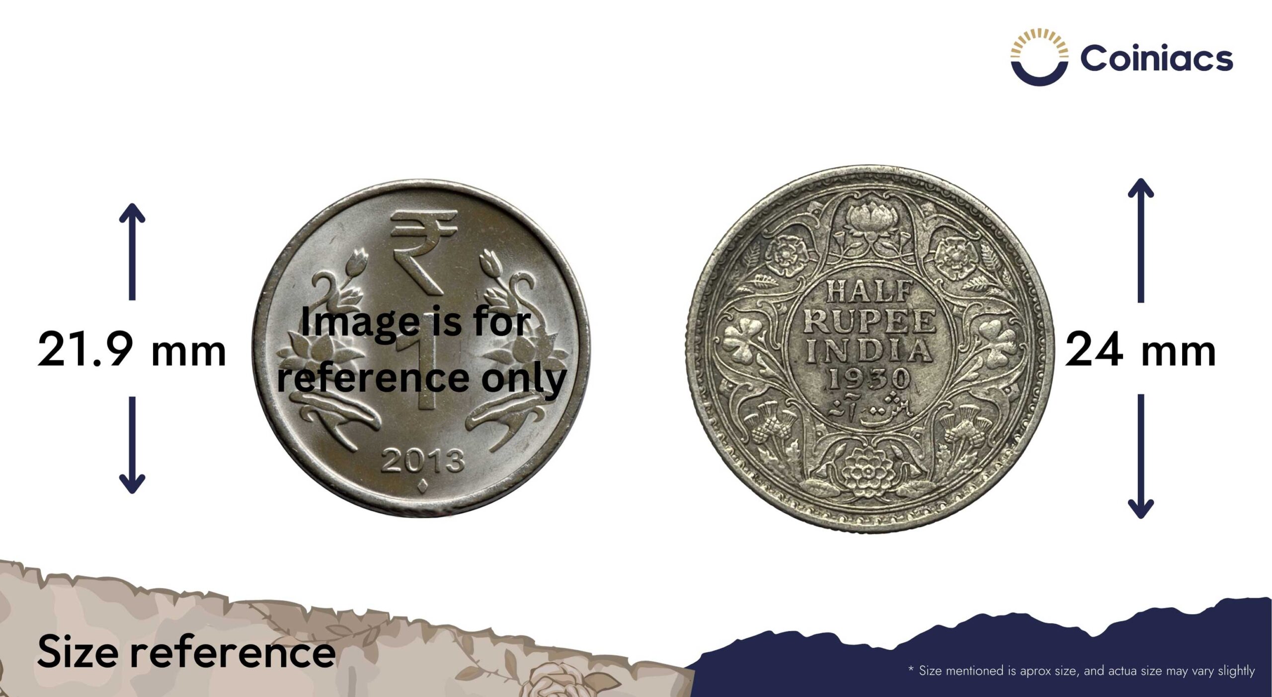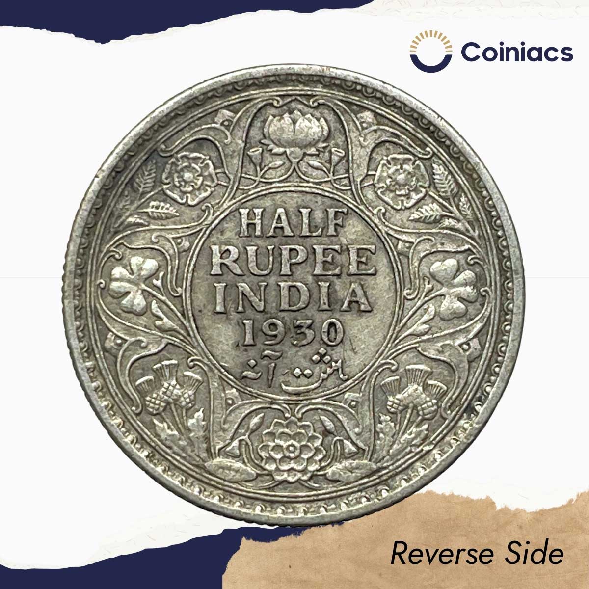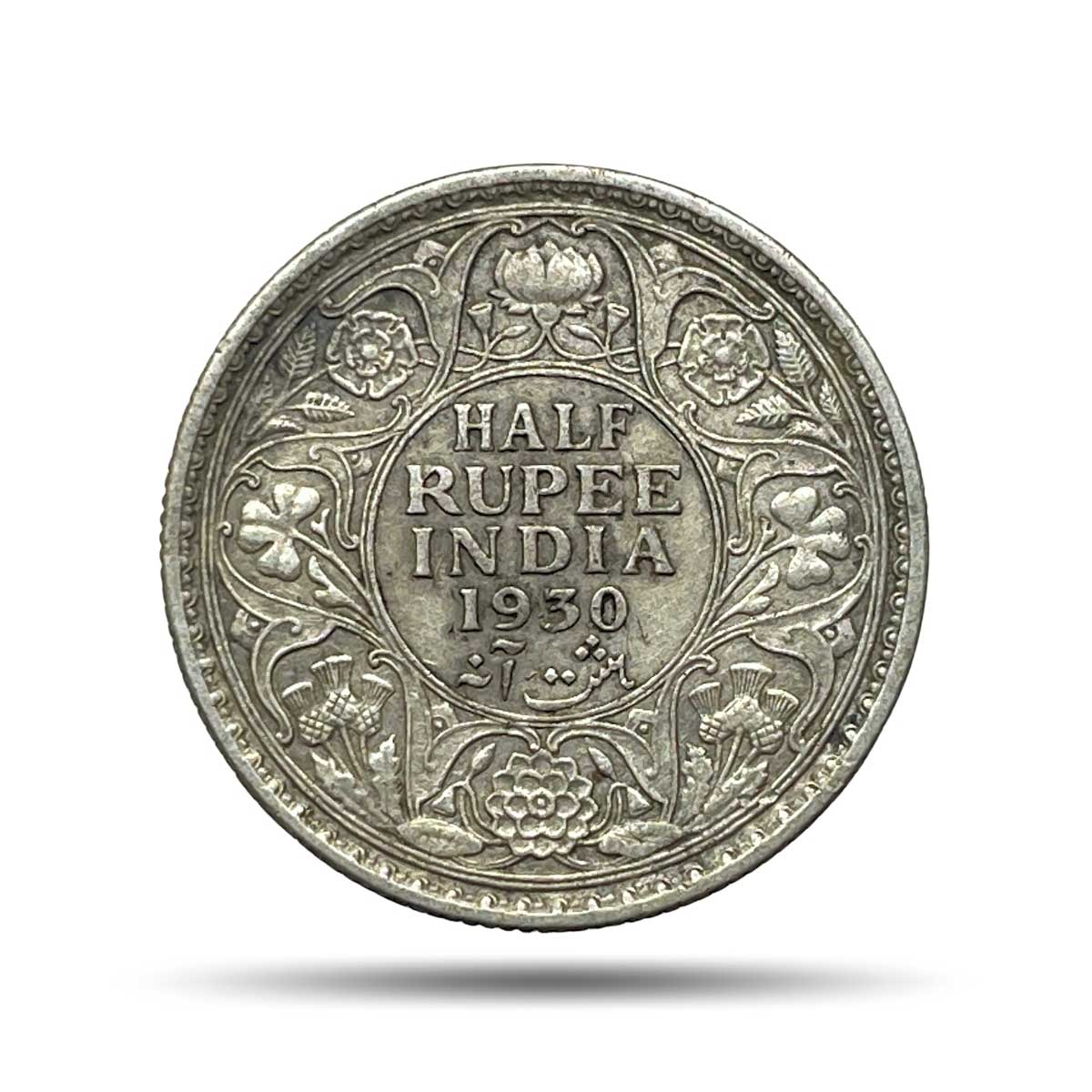 Scarce Half Rupee George V King Emperor 1930 (Key Date) Calcutta Mint Silver Coin, British India Uniform Coinage, Collectible.