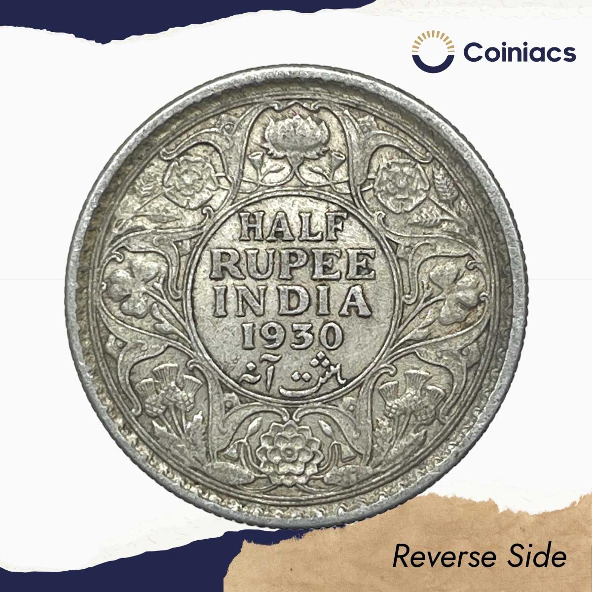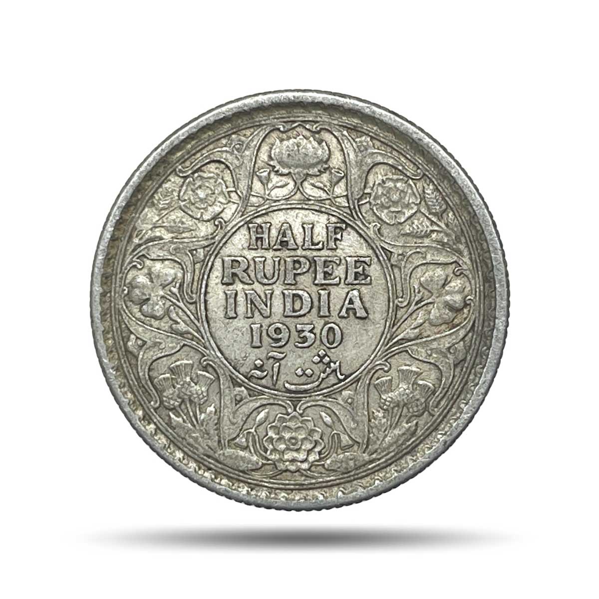 Scarce Half Rupee George V King Emperor 1930 (Key Date) Calcutta Mint Silver Coin, British India Uniform Coinage, Collectible.