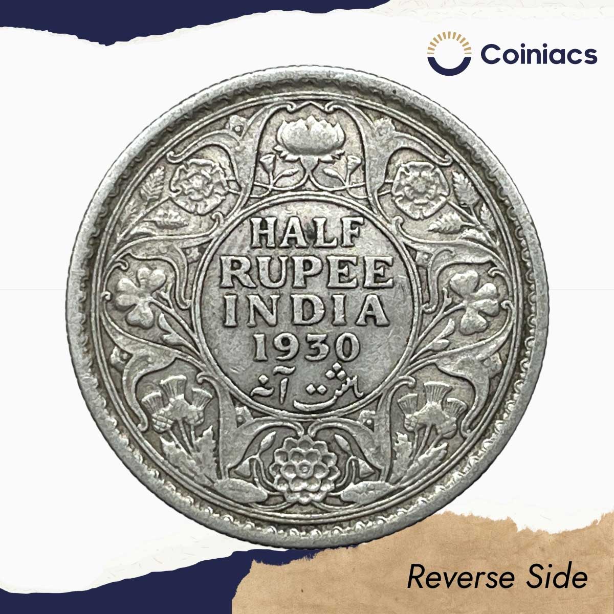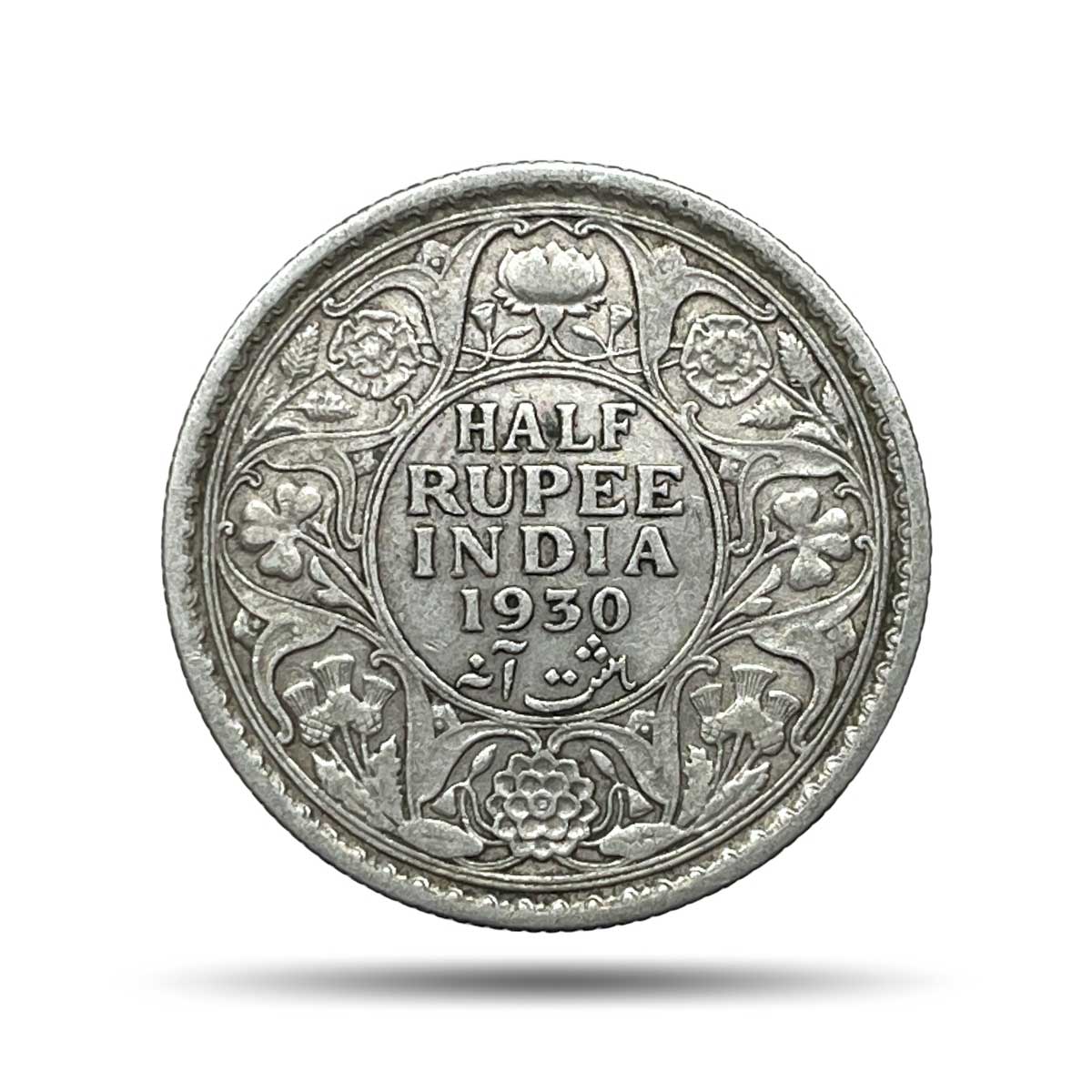 Scarce Half Rupee George V King Emperor 1930 (Key Date) Calcutta Mint Silver Coin, British India Uniform Coinage, Collectible.