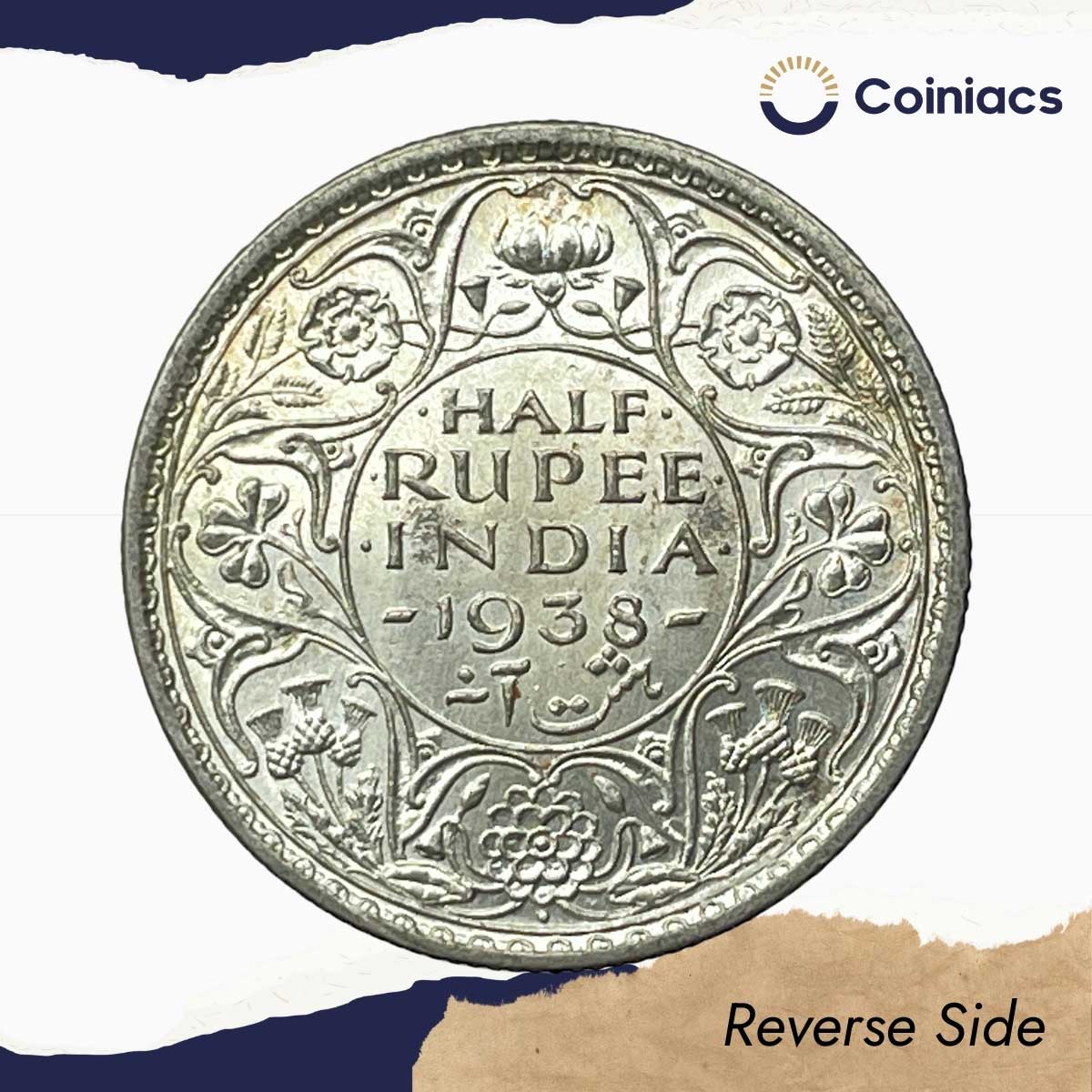 Scarce Half Rupee George VI King Emperor 1938 (Key Date) Bombay Mint Silver Coin, British India Uniform Coinage, UNC.