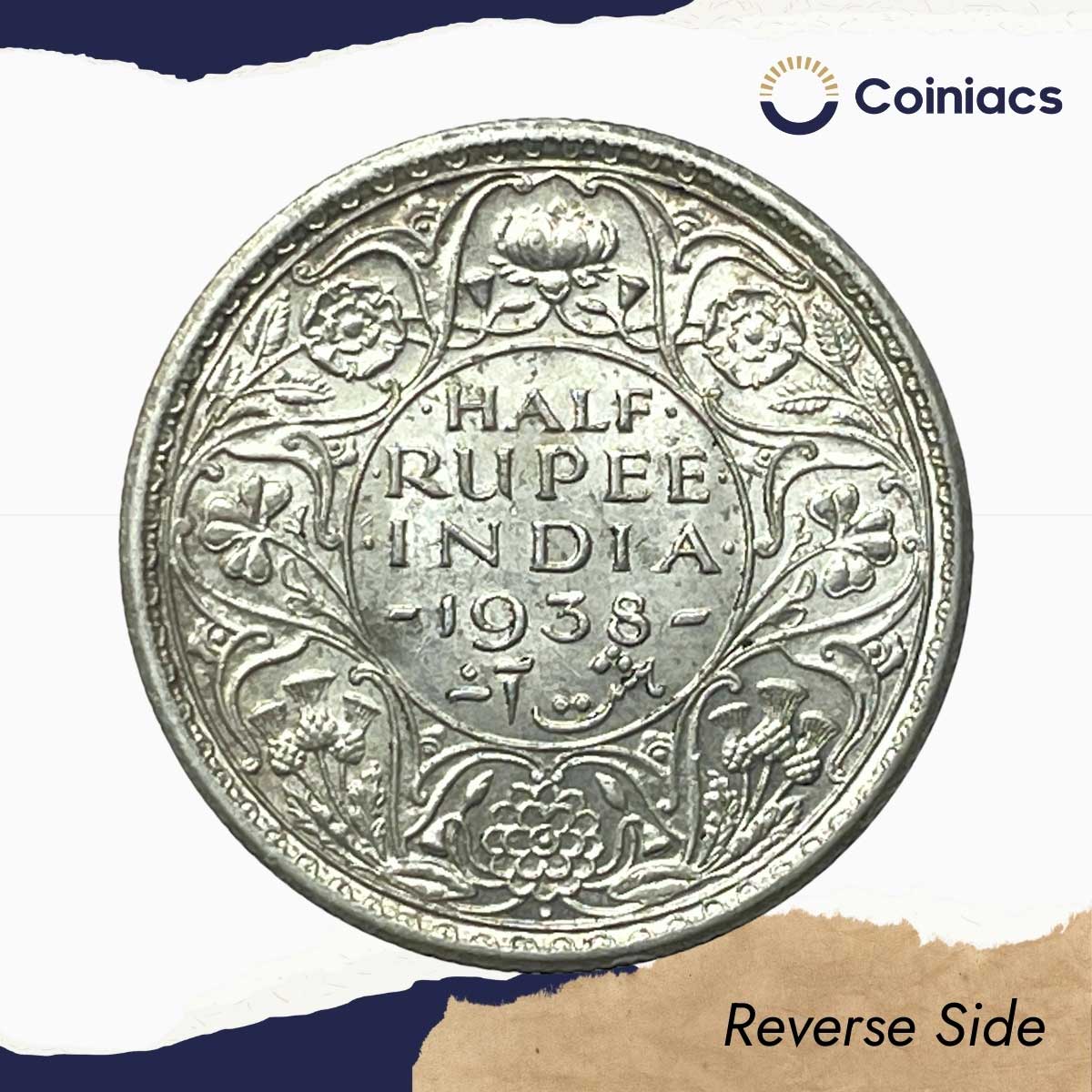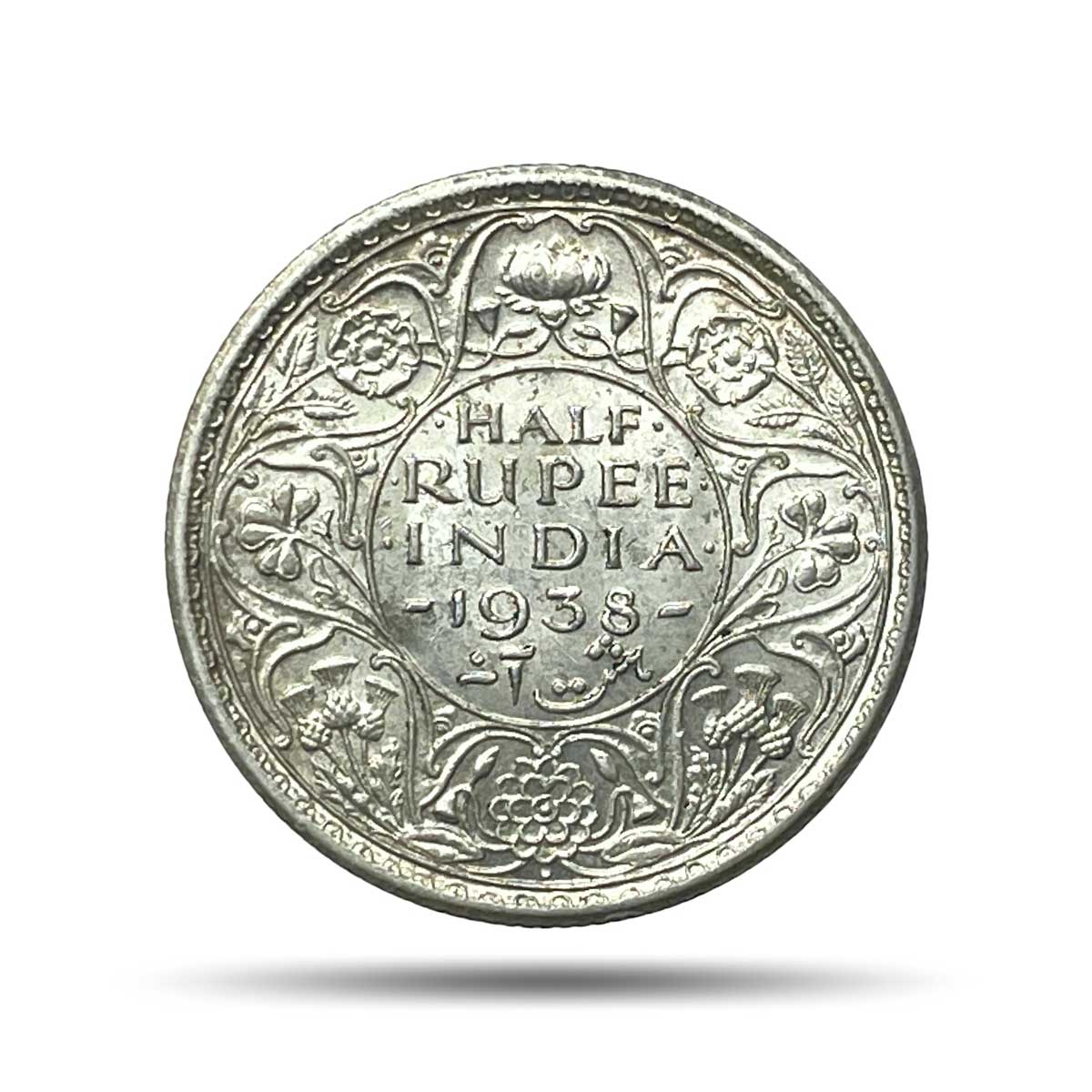 Scarce Half Rupee George VI King Emperor 1938 (Key Date) Bombay Mint Silver Coin, British India Uniform Coinage, XF.