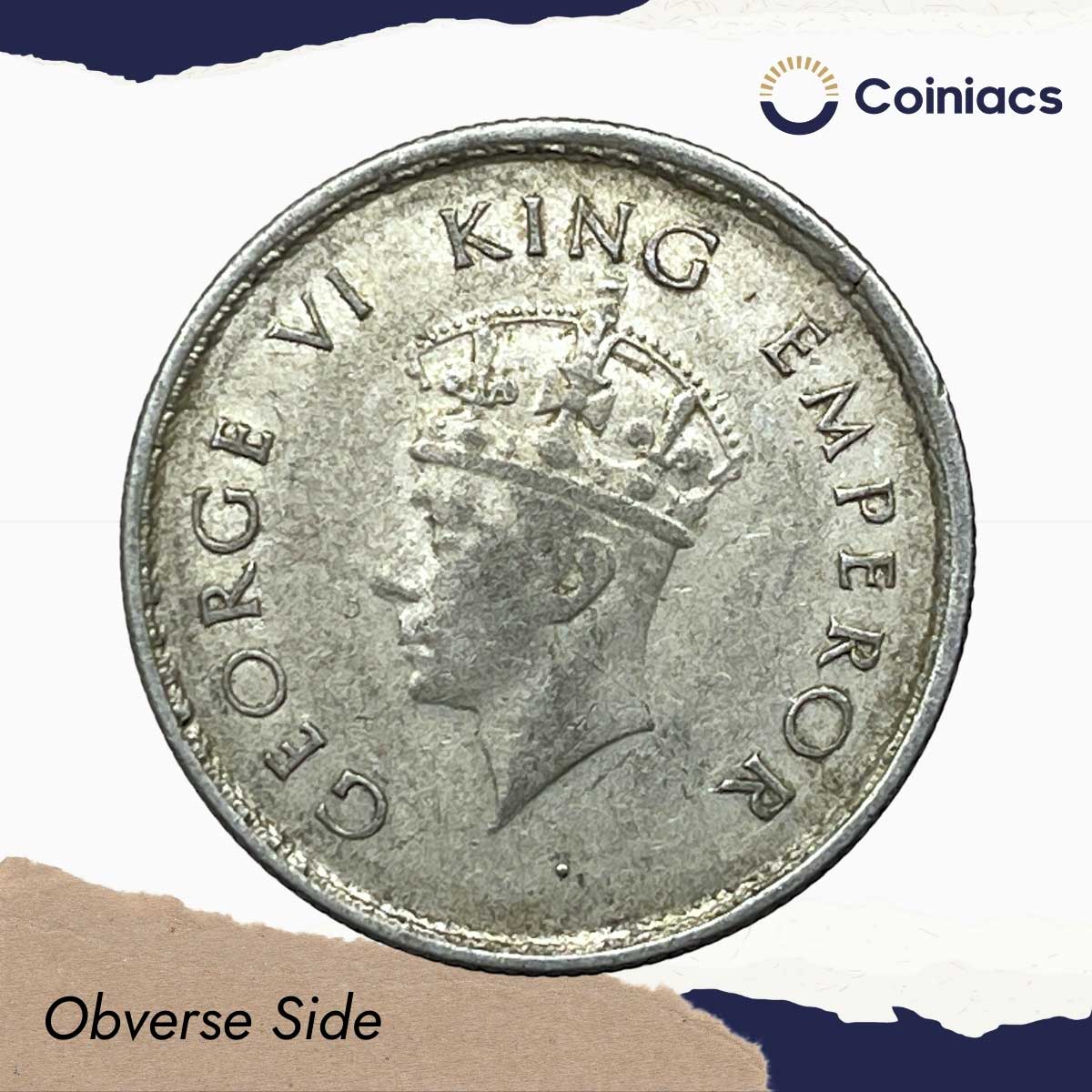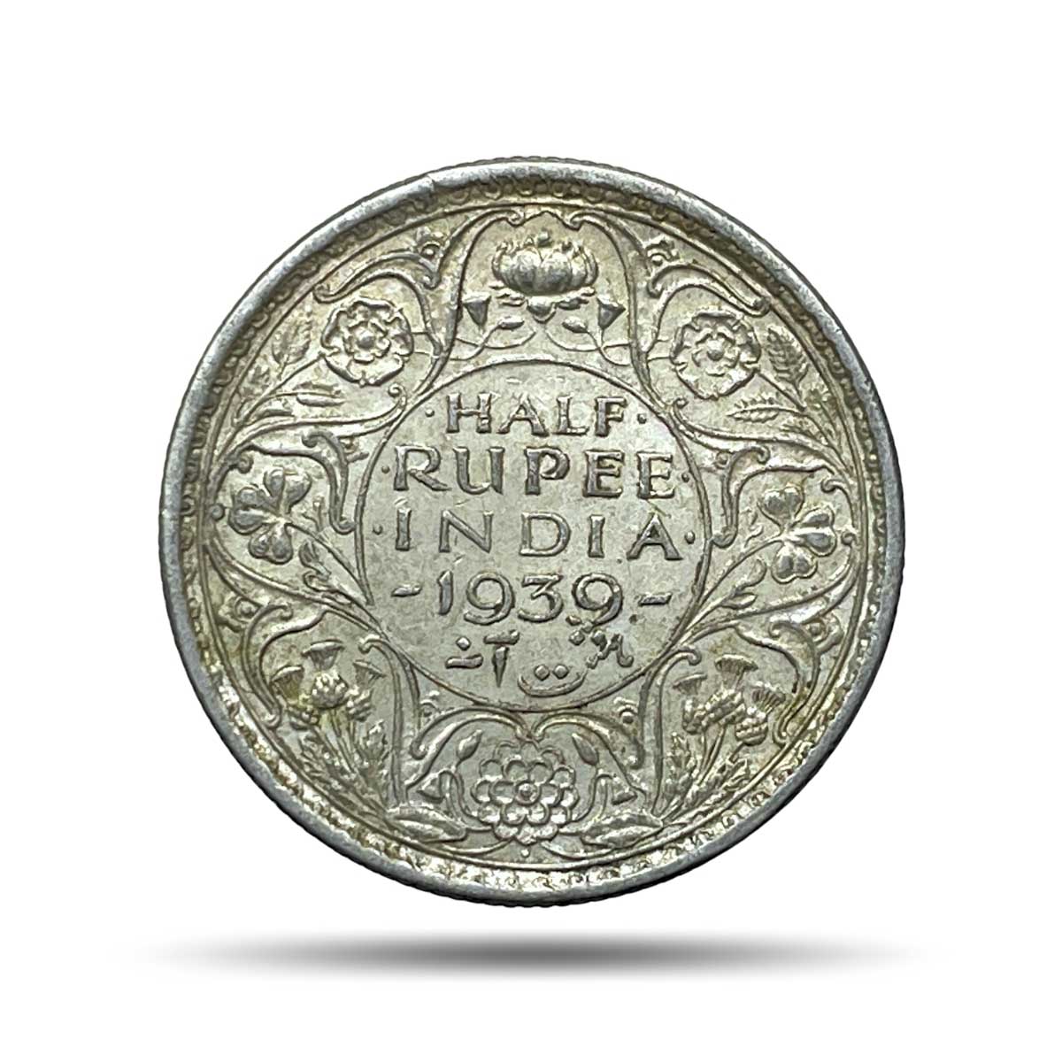 Scarce Half Rupee George VI King Emperor 1939 Bombay Mint 5.8 gms Silver Coin, British India Uniform Coinage, XF.