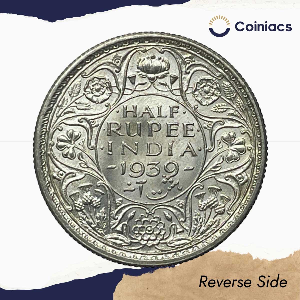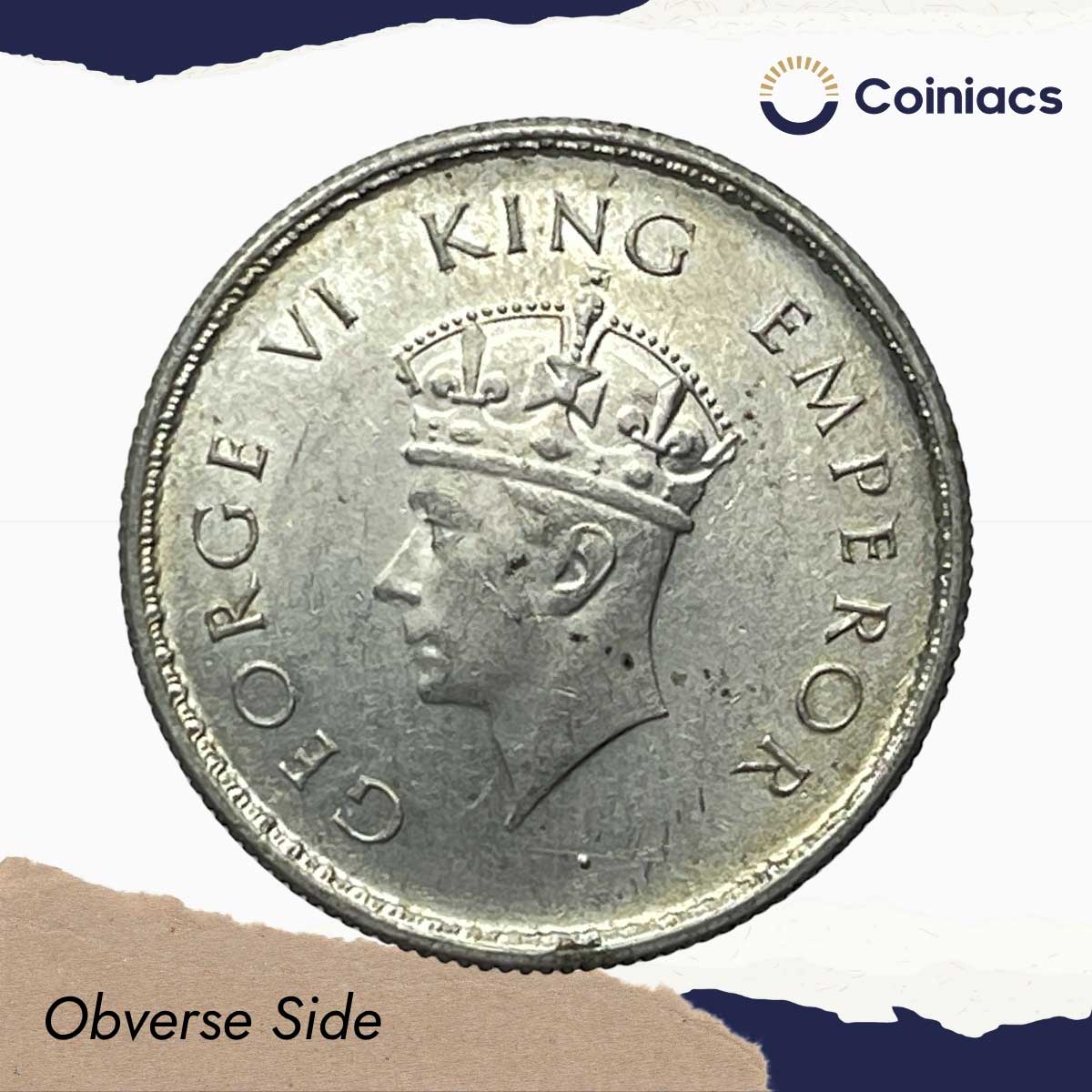 Scarce Half Rupee George VI King Emperor 1939 Silver Coin, British India Uniform Coinage, UNC.