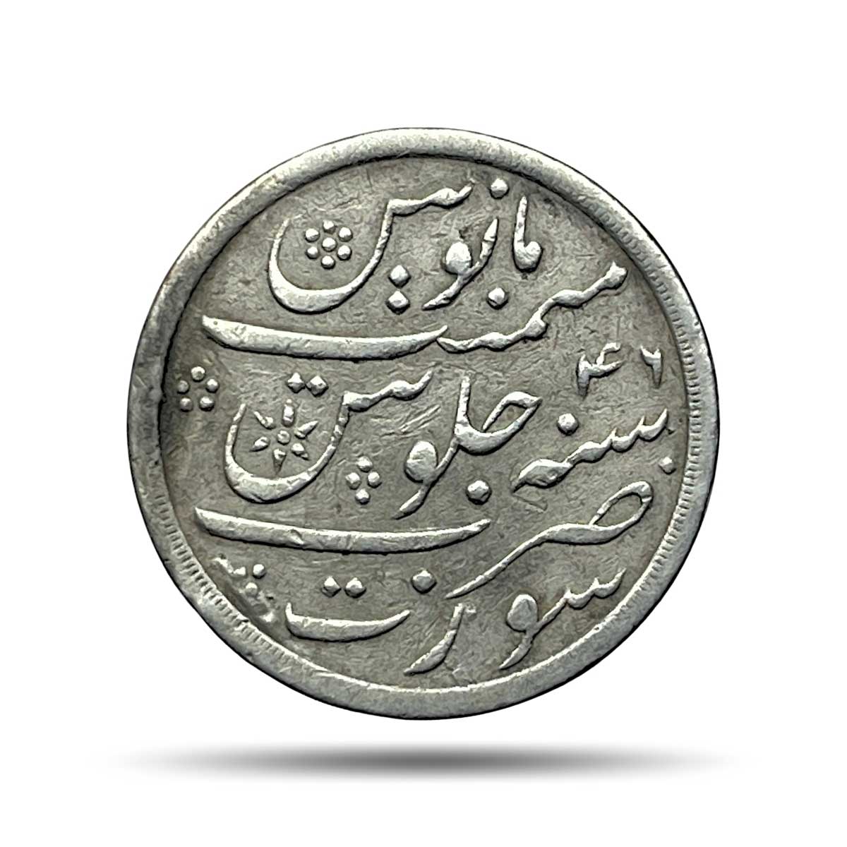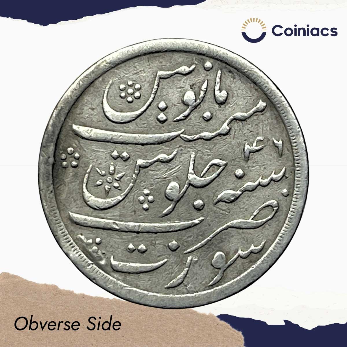 Scarce Half Rupee Shah Alam II 1215 AH RY 46 (1832-1835 CE) Surat Mint Silver Coin, Bombay Presidency, Collectible.