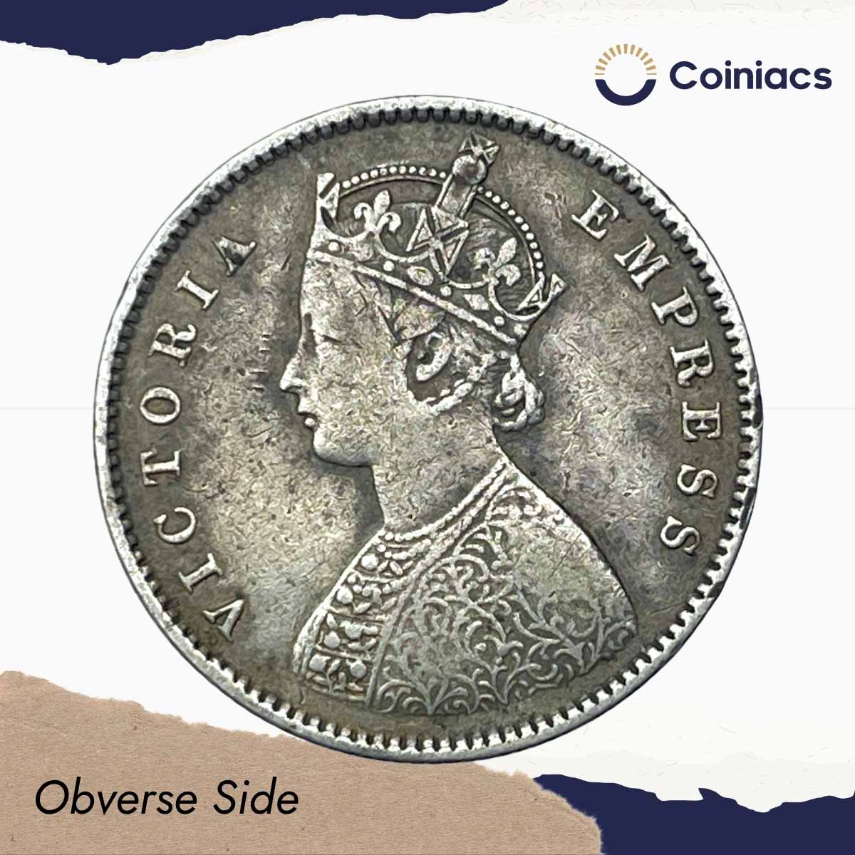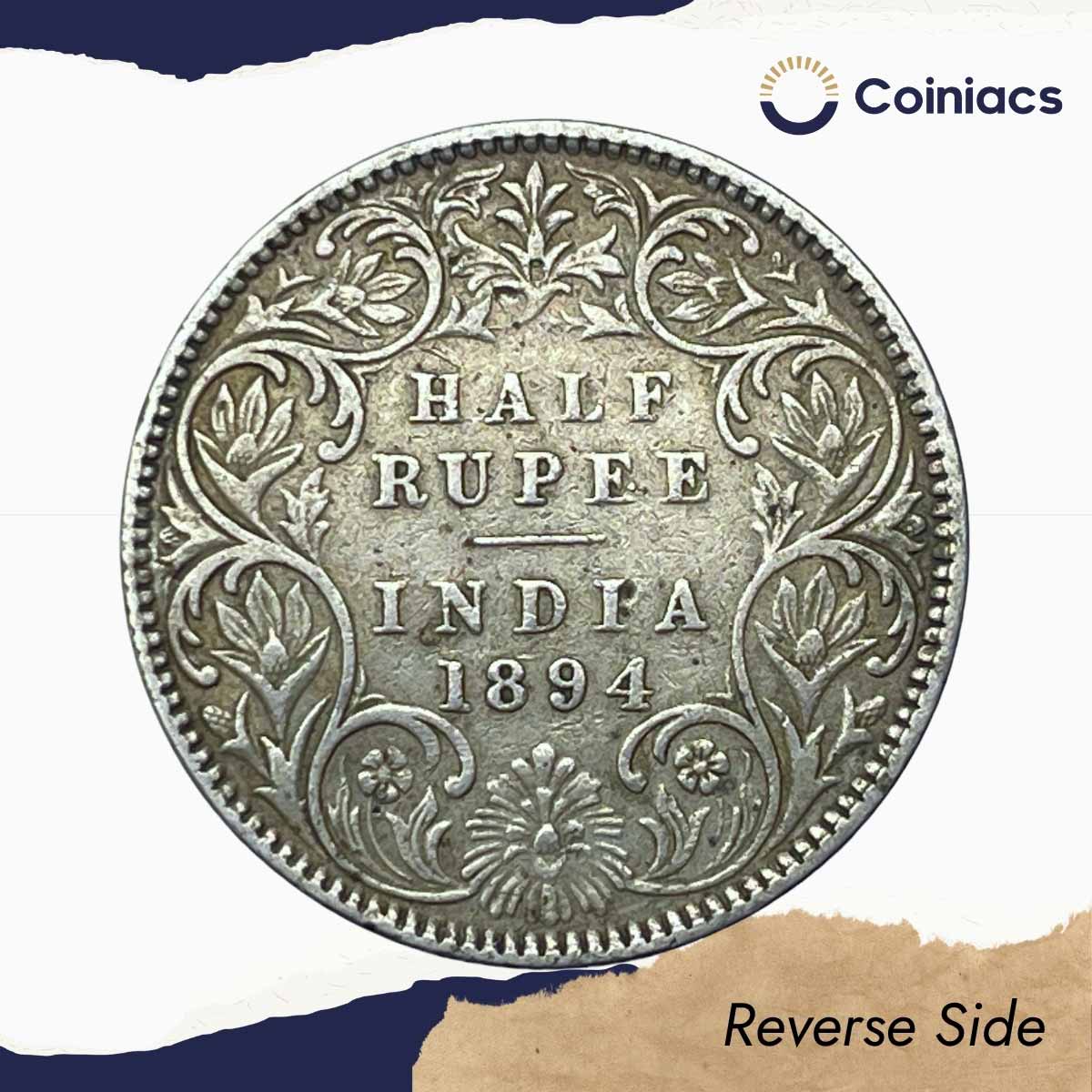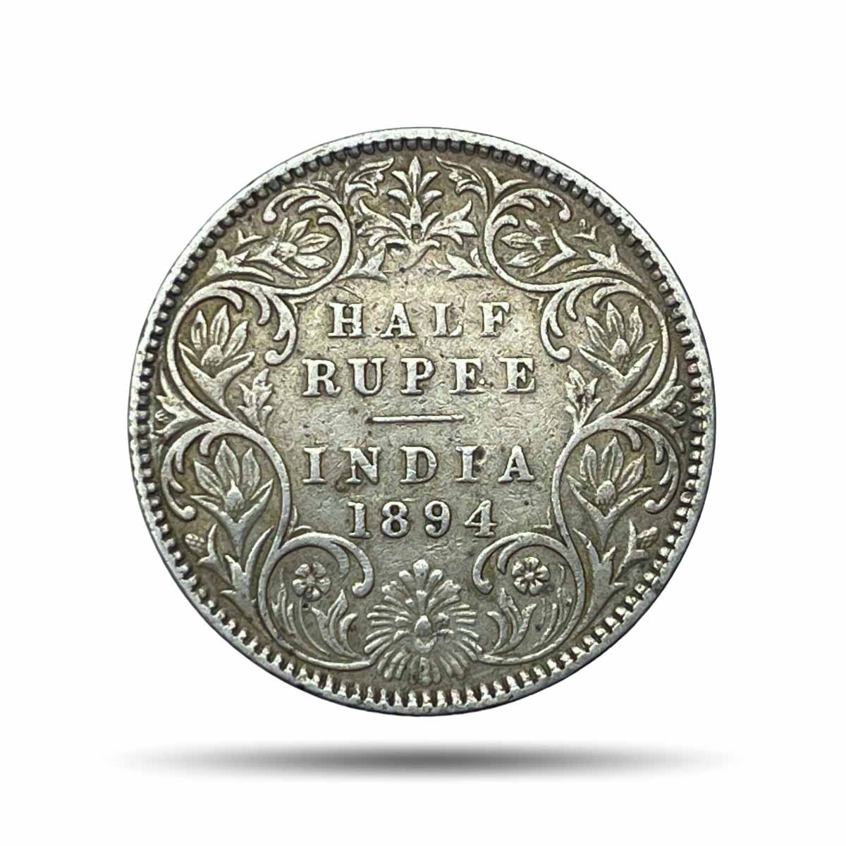 Scarce Half Rupee Victoria Empress 1894 B incused Bombay Mint Silver Coin, British India Uniform Coinage, Collectible.