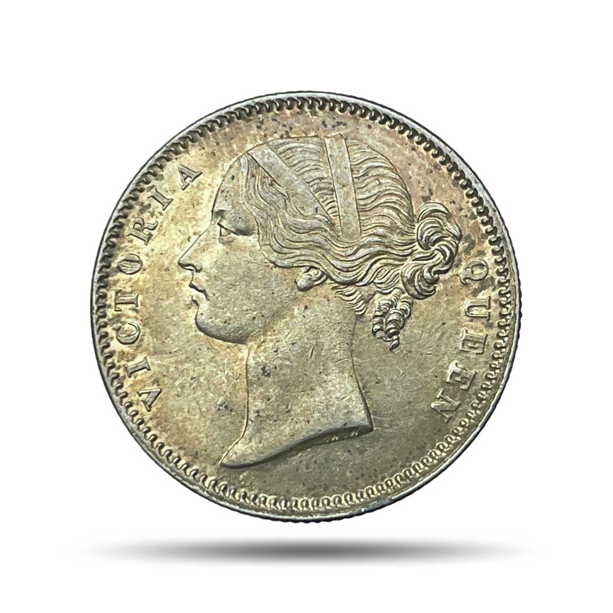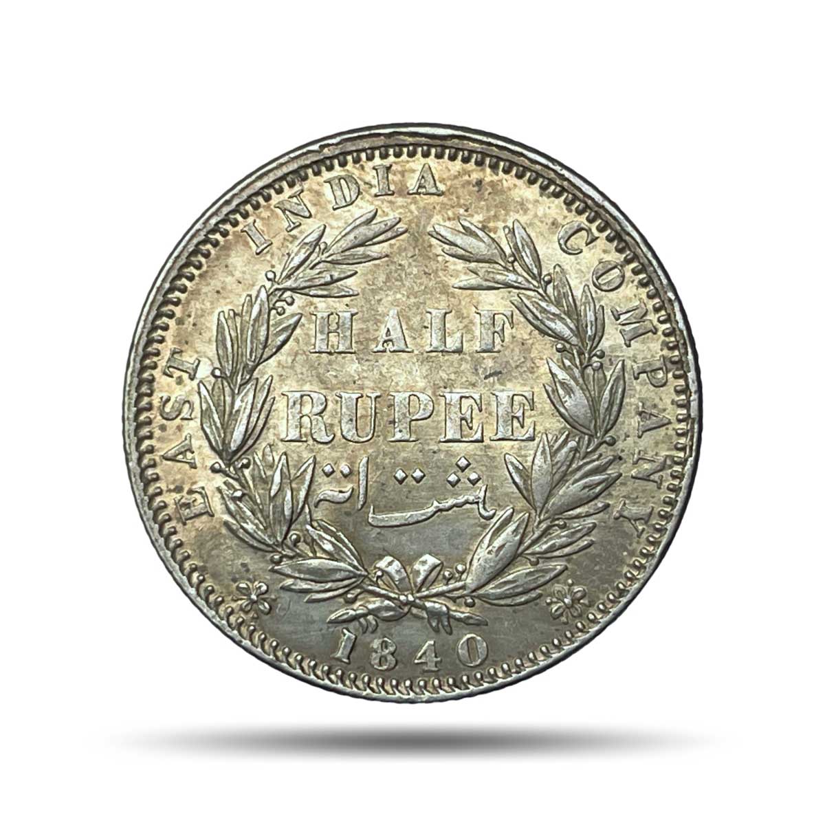 Scarce Half Rupee Victoria Queen Divided Legend 1840 CE .W.W Incused 24 Berries Silver coin, British India Uniform Coinage, Collectible.