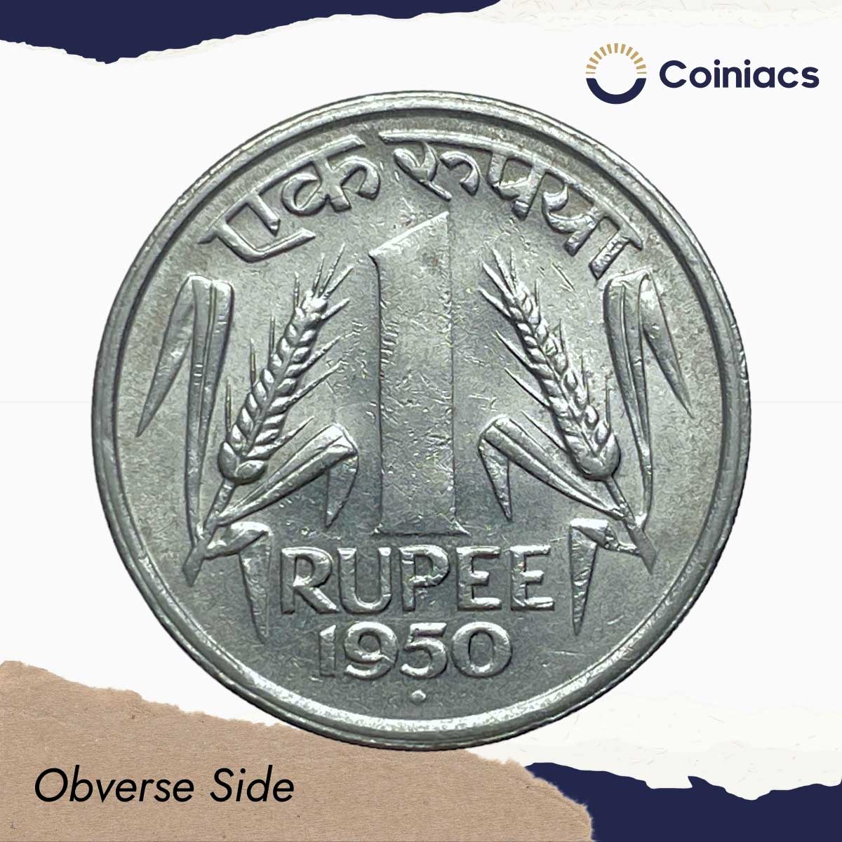 Scarce One Rupee Anna Series 1950 Bombay Mint Nickel Coin, Republic India Anna Series, AU.