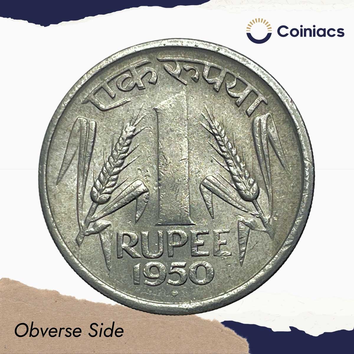 Scarce One Rupee Anna Series 1950 Bombay Mint Nickel Coin, Republic India Anna Series, XF+.