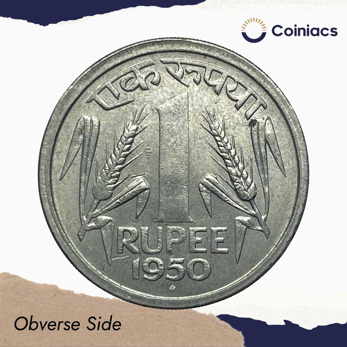 Scarce One Rupee Anna Series 1950 Bombay Mint Nickel Coin, Republic India Anna Series, XF+.