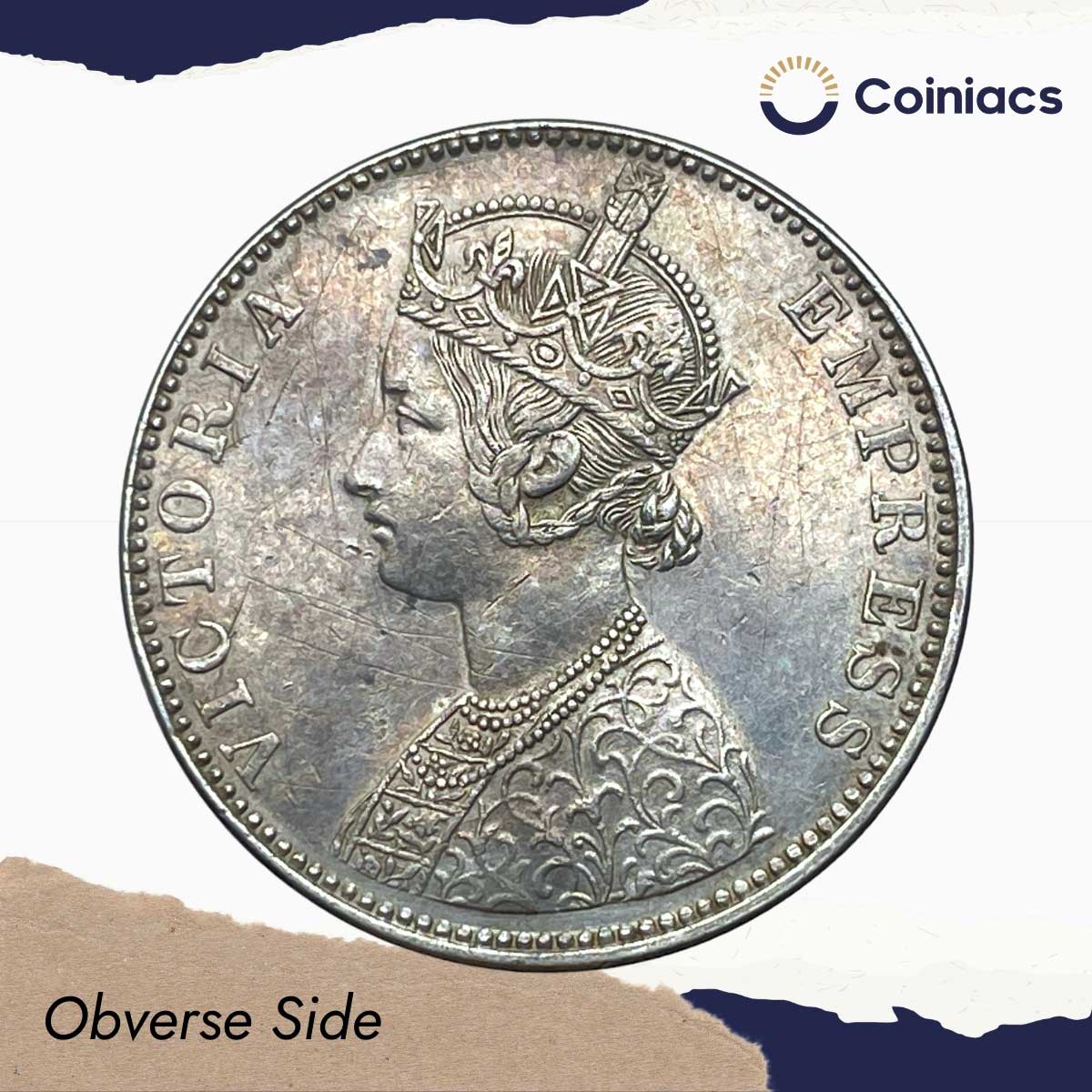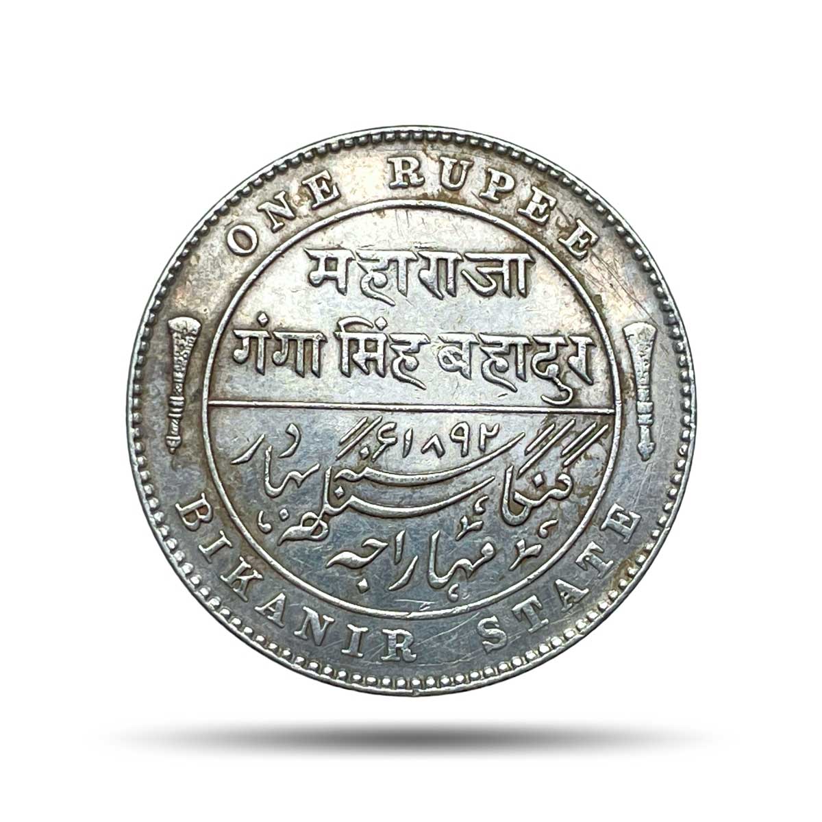 Scarce One Rupee Ganga Singh Bahadur in the name of Victoria Empress 1892 CE Silver coin, Princely State of Bikanir (Bikaner), XF.