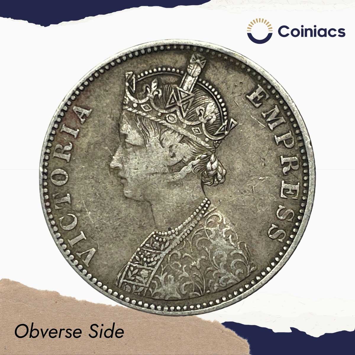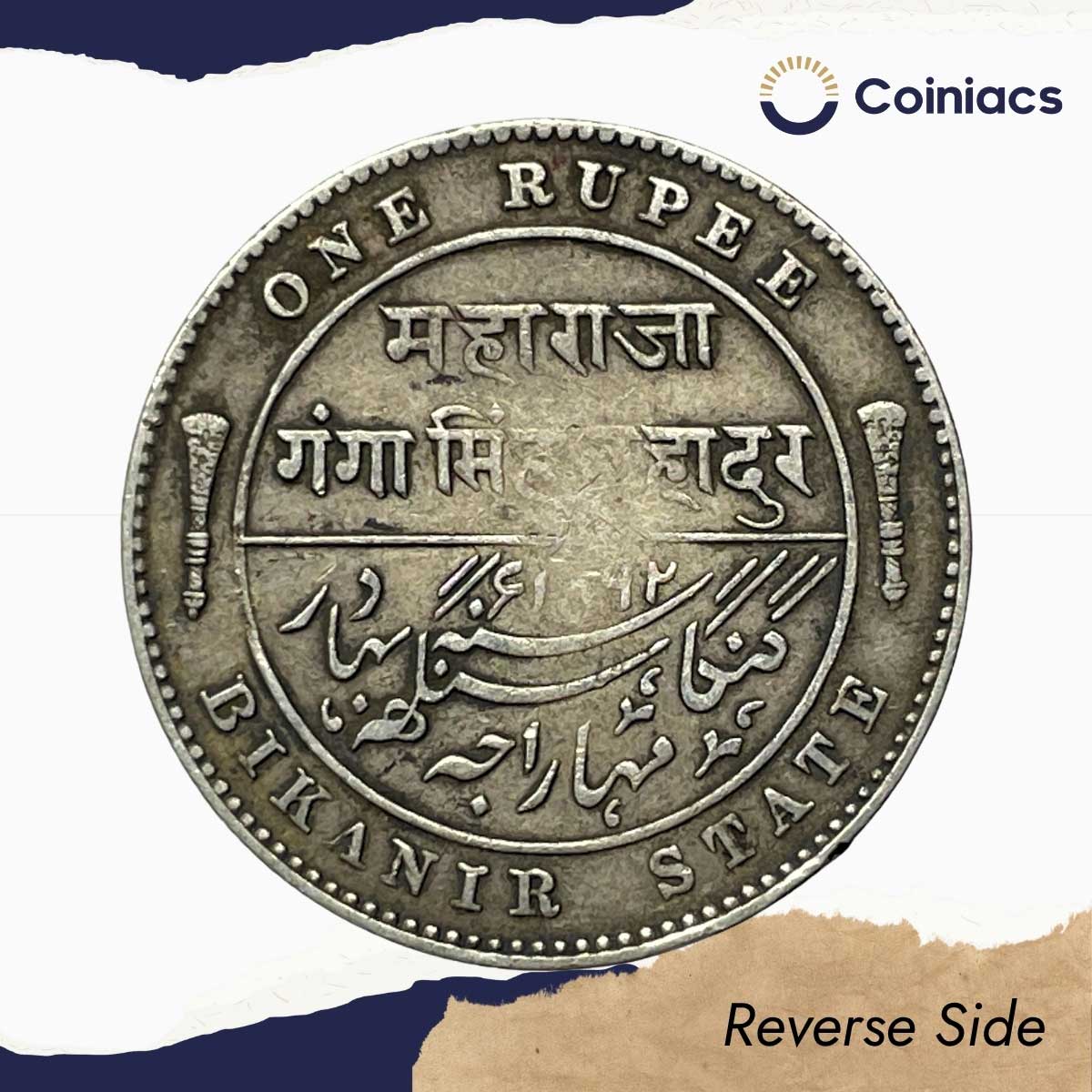 Scarce One Rupee Ganga Singh Bahadur in the name of Victoria Empress 1892 CE Silver coin, Princely State of Bikanir, Collectible.