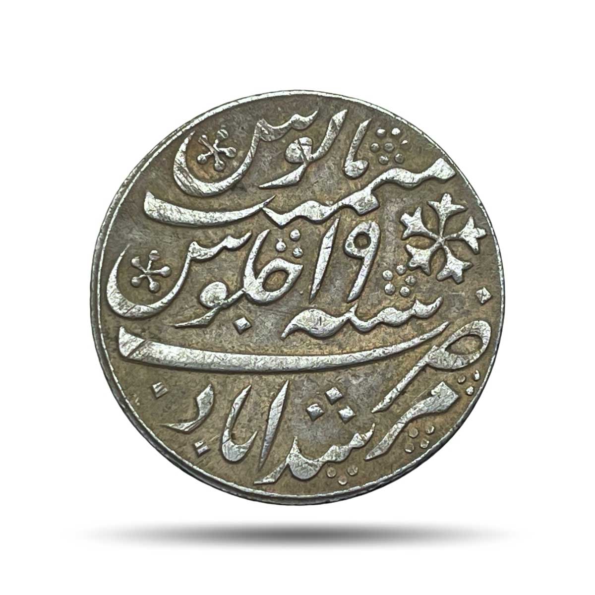 Scarce One Rupee Shah Alam II RY 19 (1819-29 CE) Murshidabad Mint Silver coin, Bengal Presidency, Collectible.