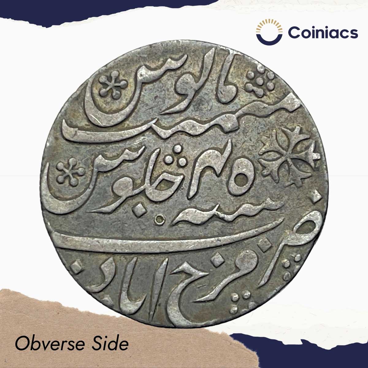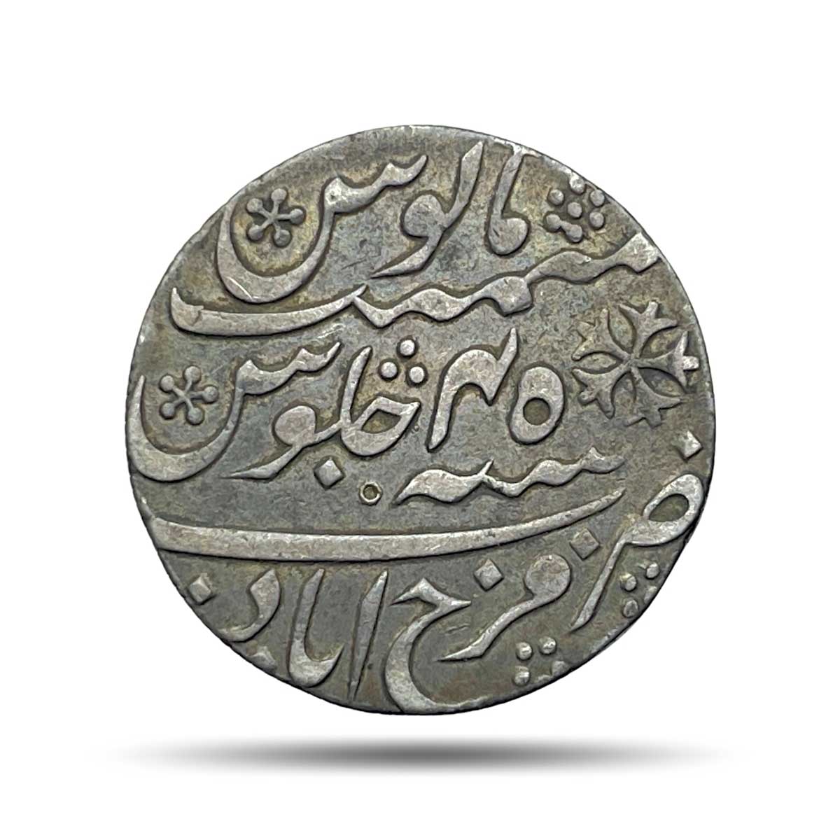 Scarce One Rupee Shah Alam II RY 45 (1820-31 CE) Farrukhabad Mint Silver Coin, Bengal Presidency, Collectible.