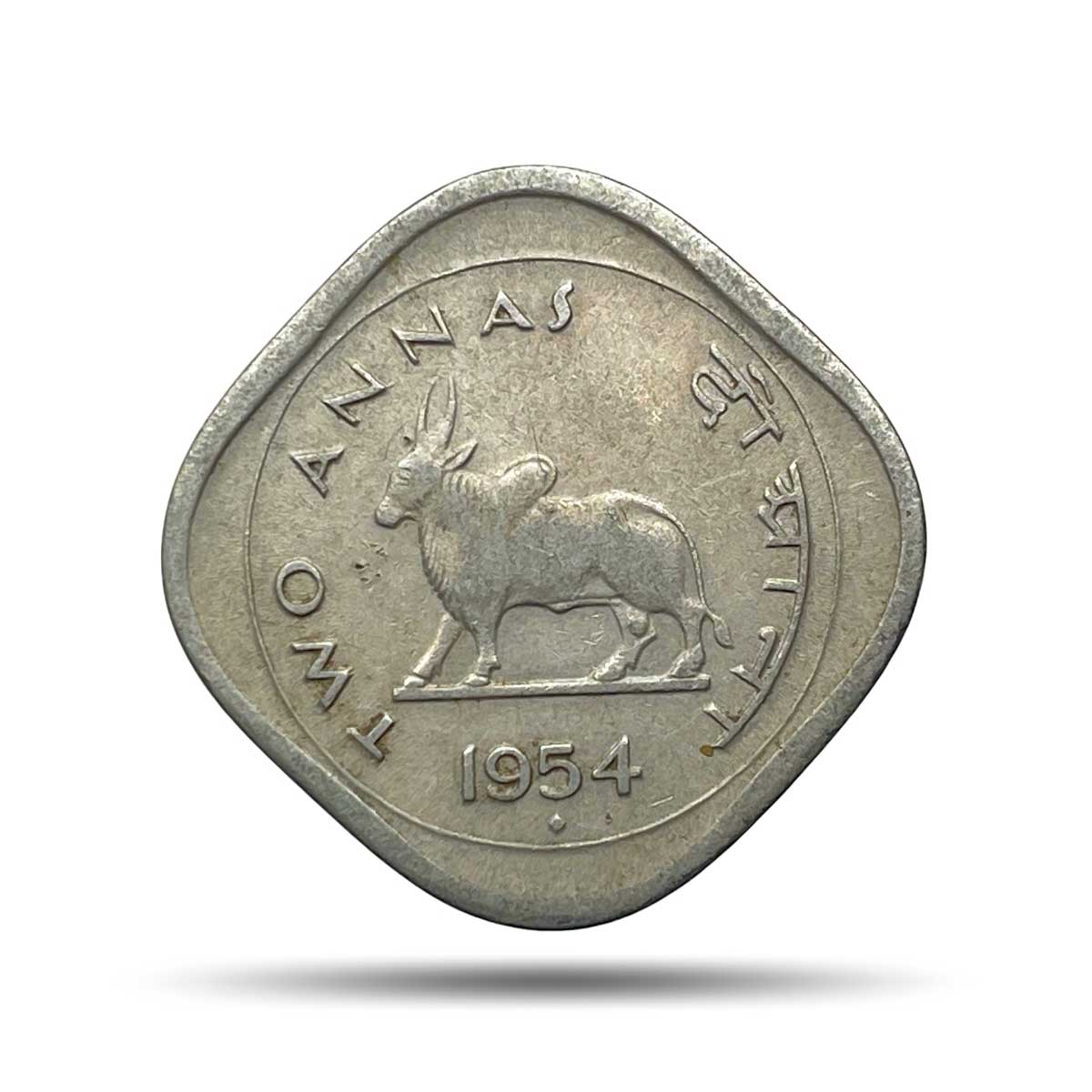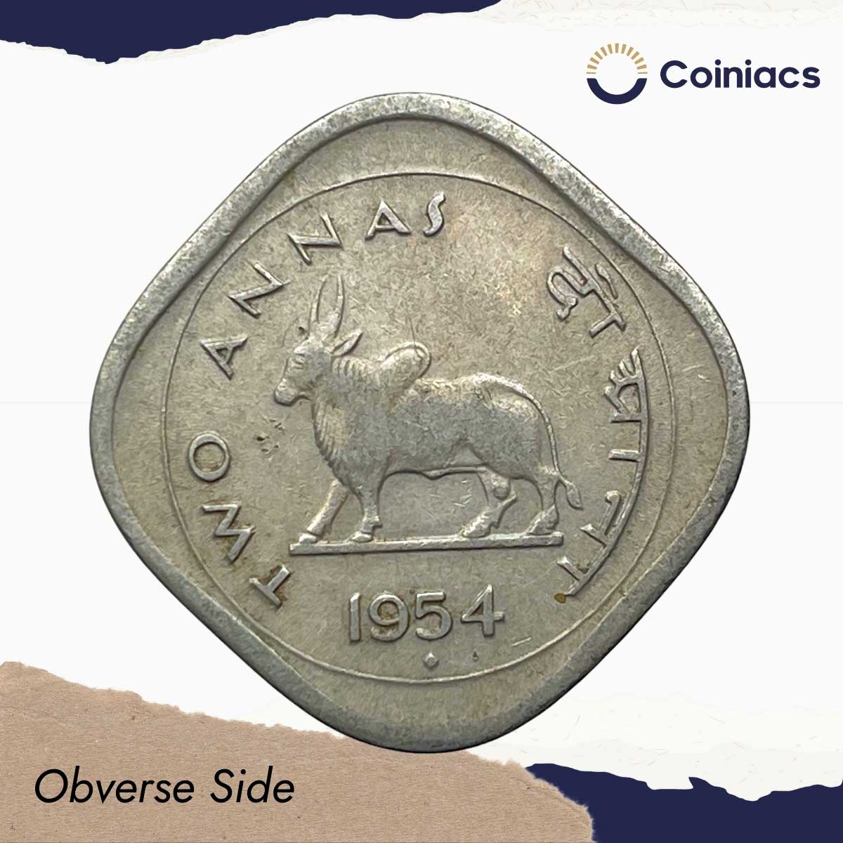 Scarce Two Annas (Bull Anna) 1954 Bombay Mint Copper Nickel Coin, Republic India Anna Series, Collectible.