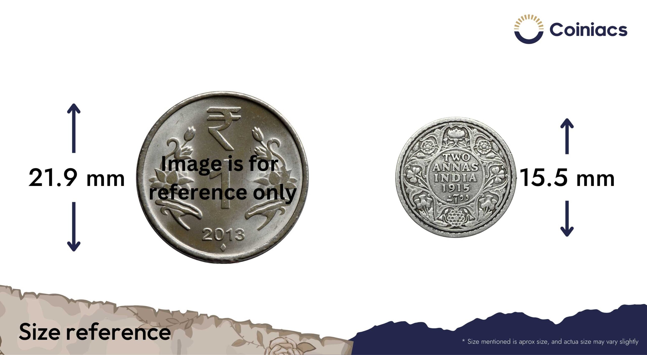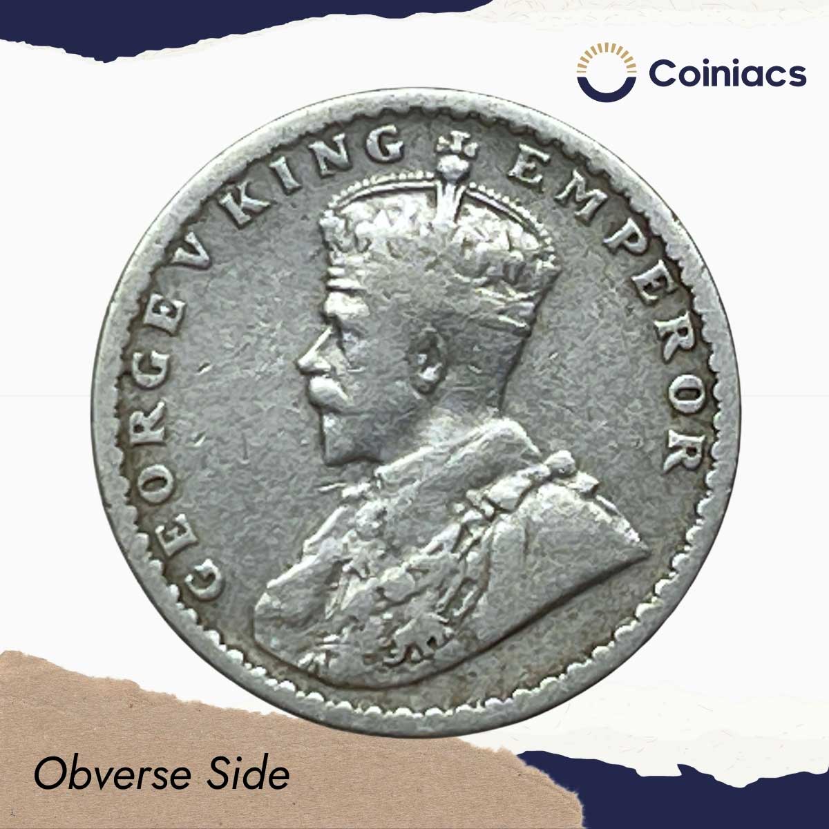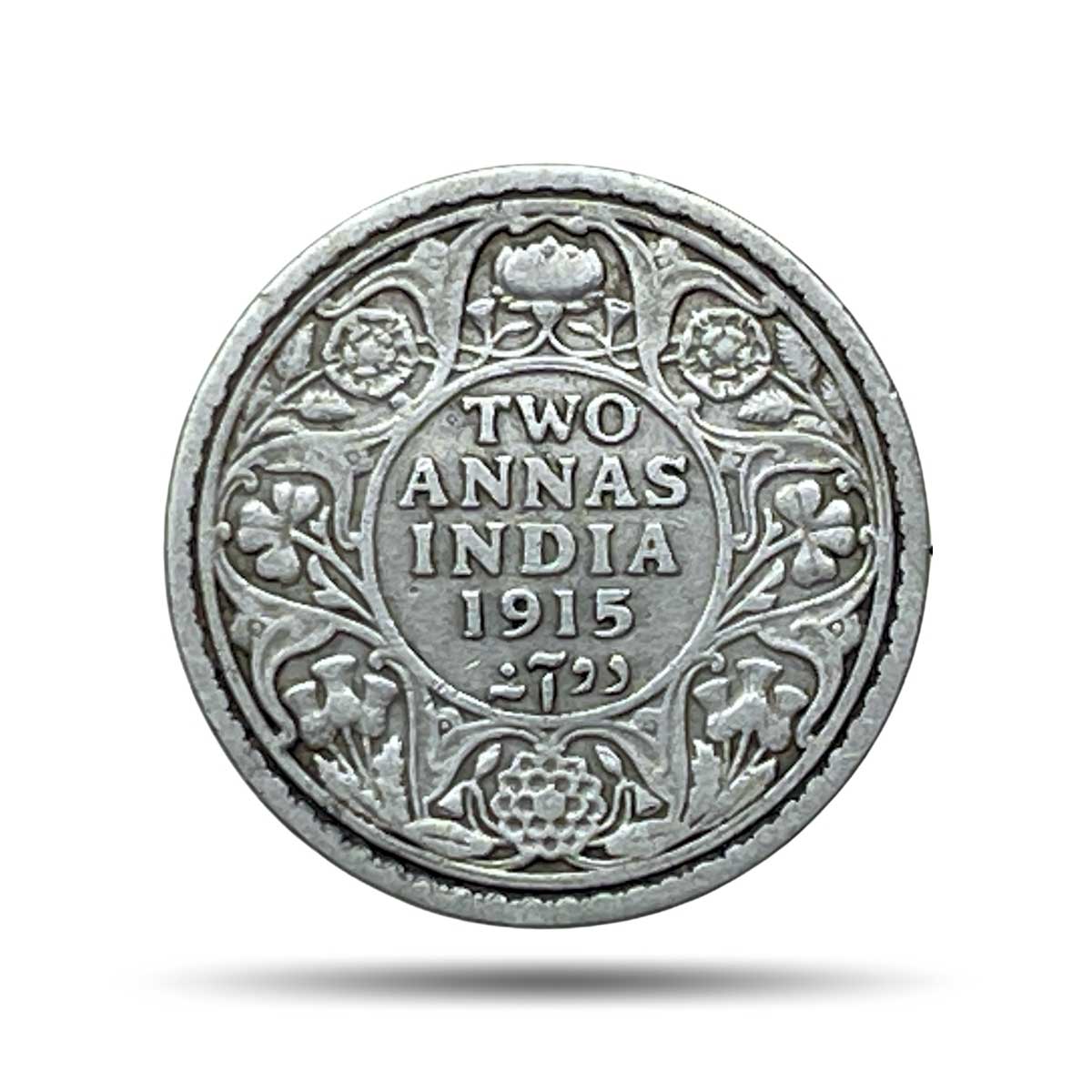 Two Annas George V King Emperor 1915 (Key Date) Calcutta Mint Silver Coin, British India Uniform Coinage, Collectible.