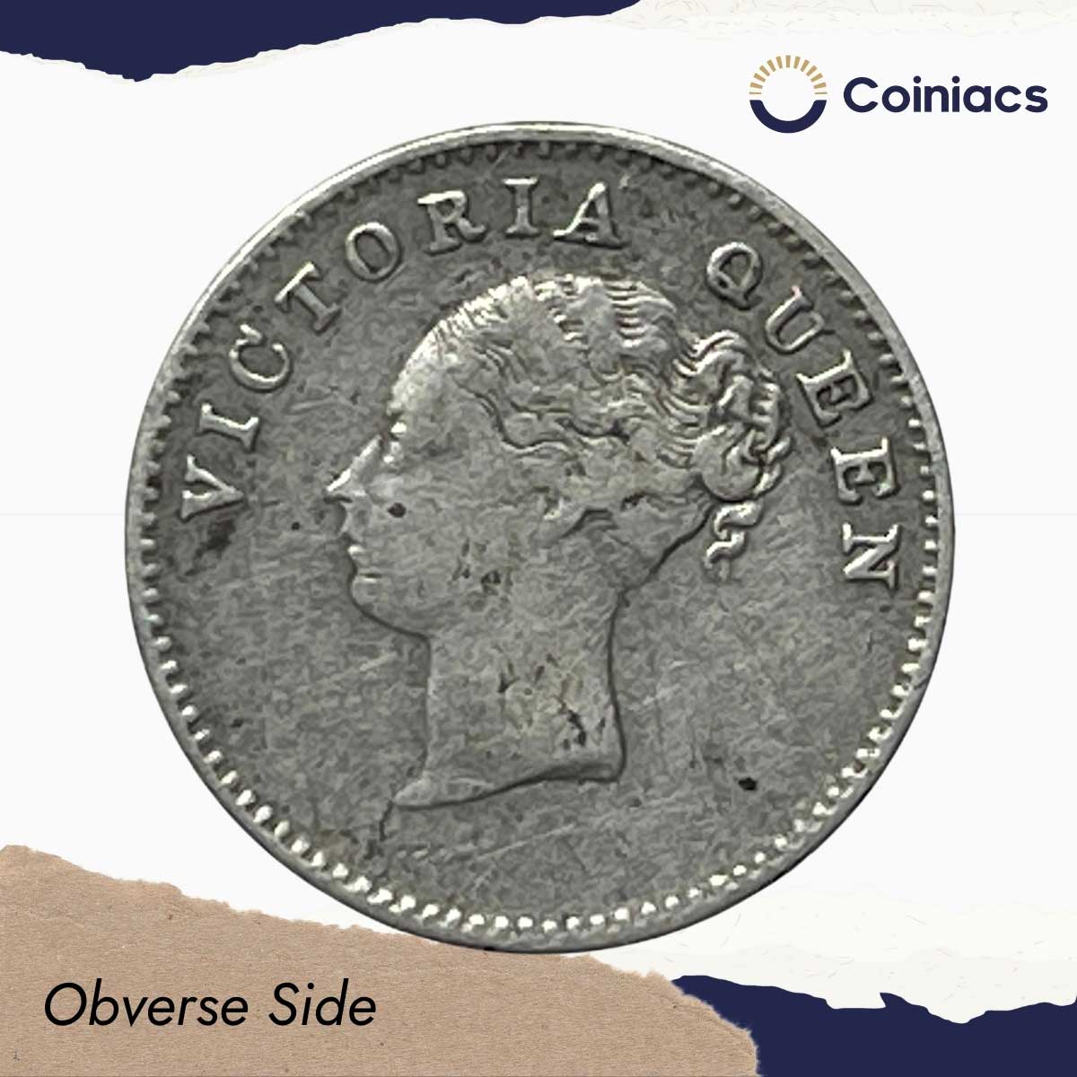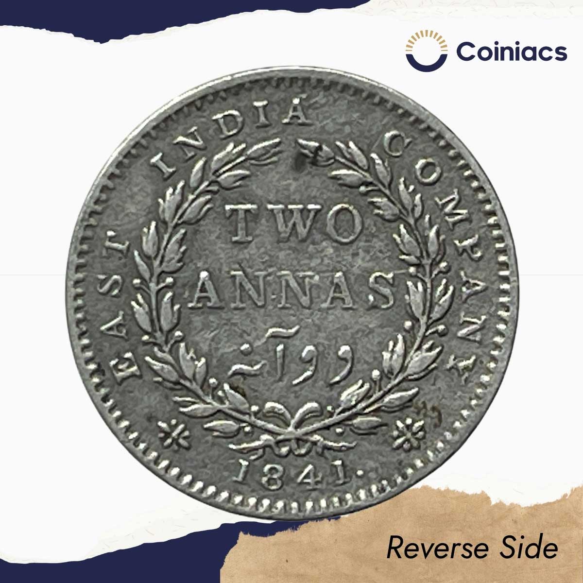 Two Annas Victoria Queen Continous Legend 1841 CE Silver Coin, British India Uniform Coinage, Collectible.