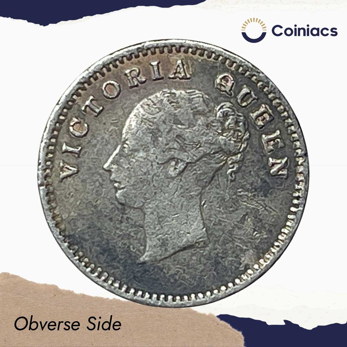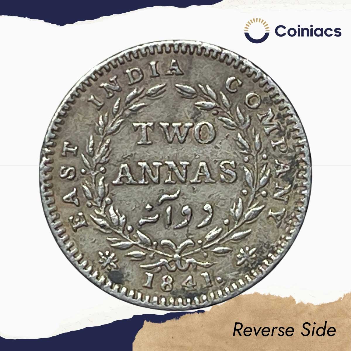 Two Annas Victoria Queen Continous Legend 1841 CE Silver Coin, British India Uniform Coinage, Collectible.