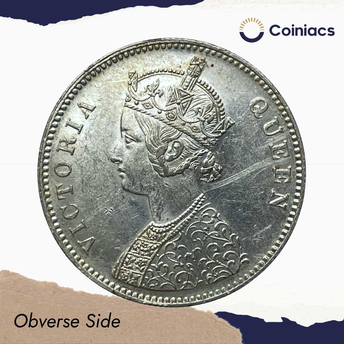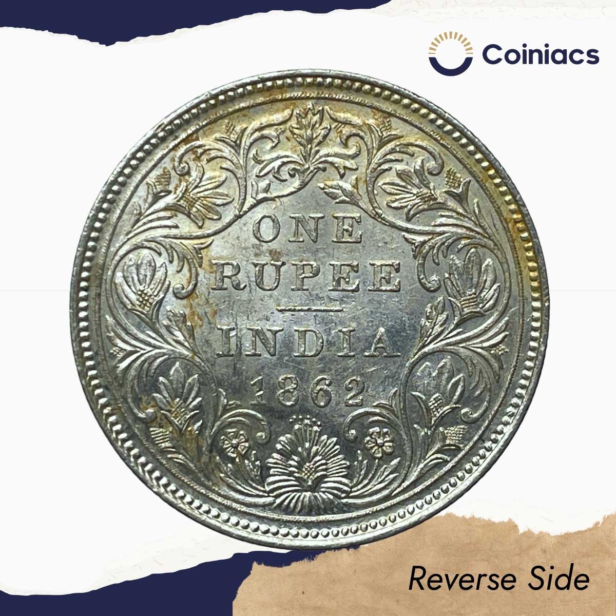 UNC One Rupee Victoria Queen 1862 (7 dots) Silver Coin, British India Uniform Coinage, UNC.