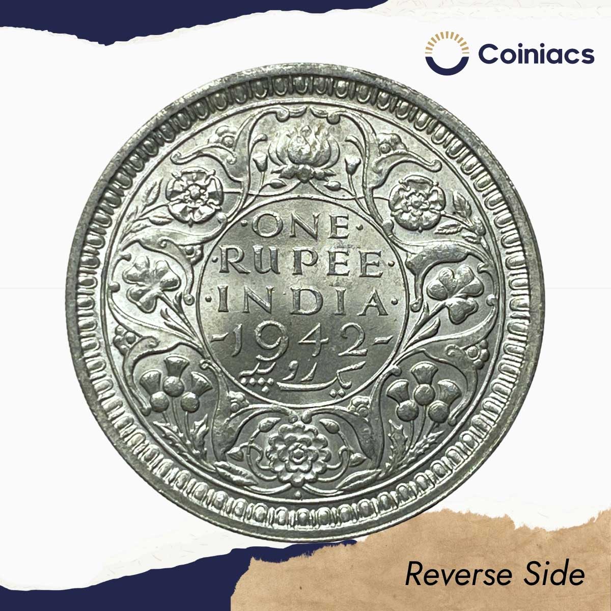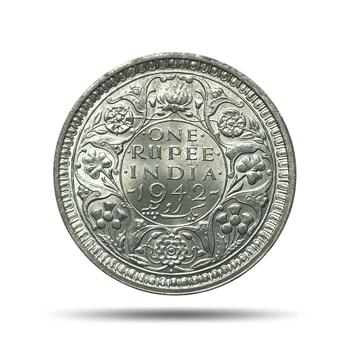 UNC Scarce One Rupee George VI King Emperor 1942 Bombay Mint Silver Coin, British India Uniform Coinage, UNC.